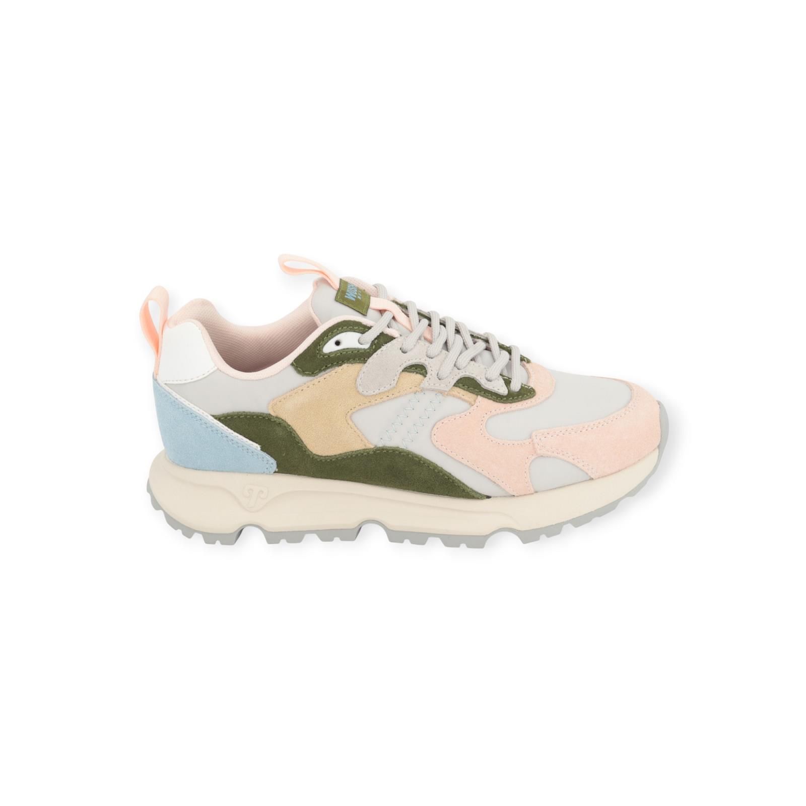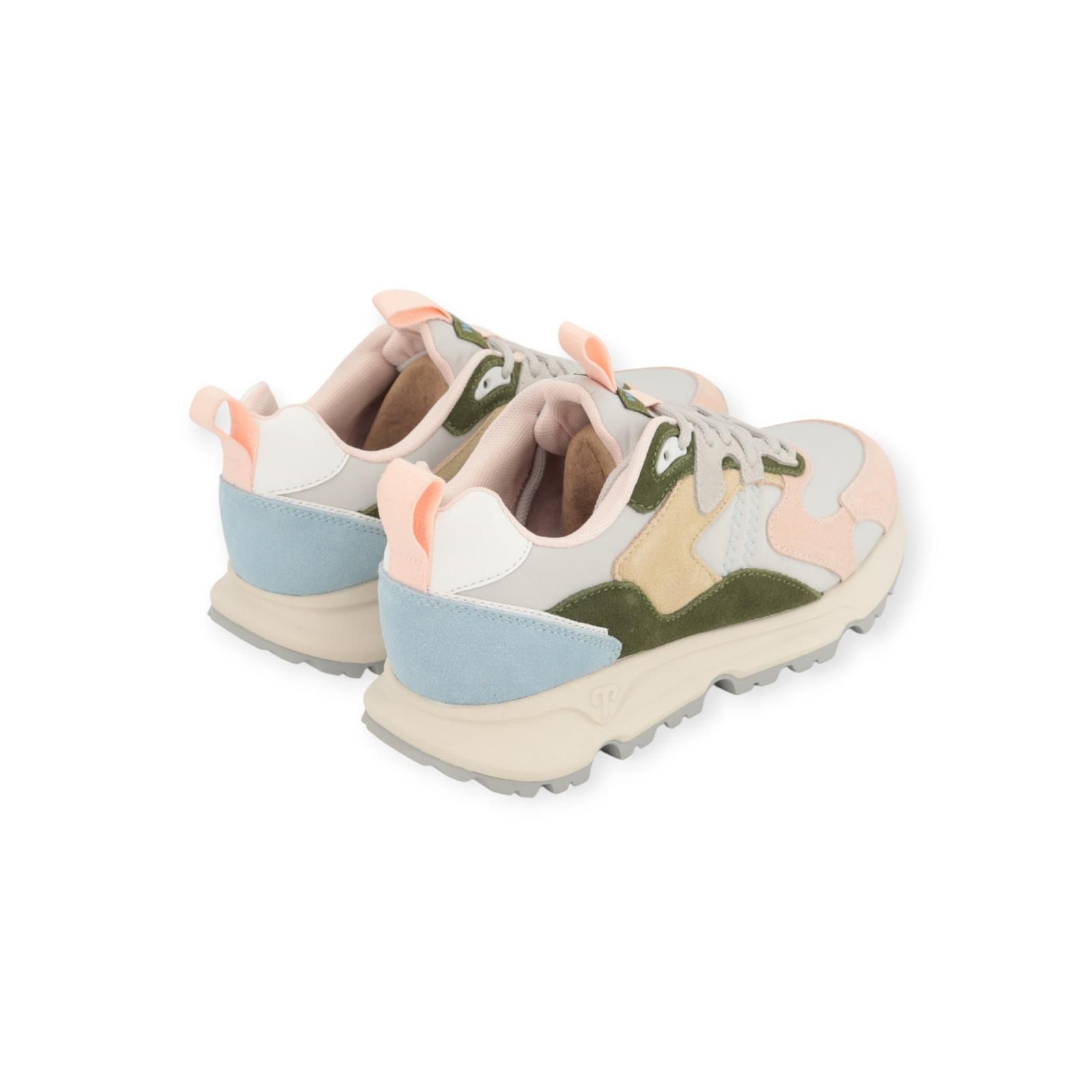 Sneaker Ruyi Art Song 26 van Wushu Ruyi voor dames. Deze runner is in multi kleuren (beige, roze, kaki, grijs) suède stiksels en grijs nylon. Mooi afgewerkt met roze hiellip en hielflap in lichtblauw en wit leer. Geïnspireerd door de berg Song en de legendarische Shaolin-meesters. Deze runnerzool belichaamt het veerkracht, aanpassingsvermogen en precisie. De binnenzool is uitneembaar.