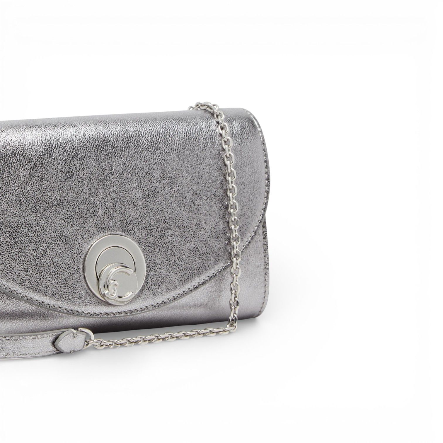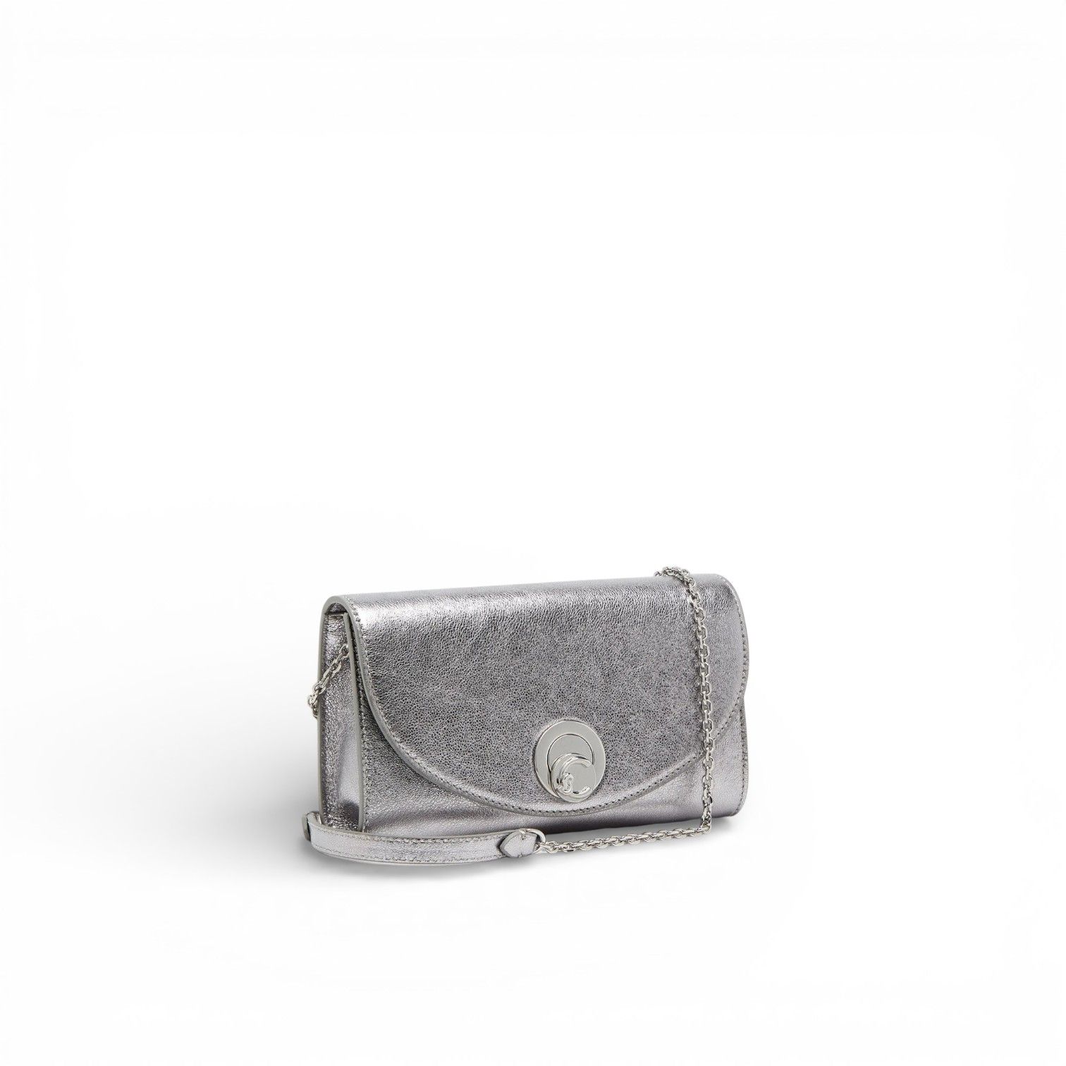 Clutch Nikla Smooth van Coccinelle voor dames. Deze handtas is in gemaakt in zilver ‘steel’ shining gelooid leer die het model nog zachter laat aanvoelen. Heeft een mooie verfijnde gouden draaisluiting die deze tas met klep elegant afwerkt. Dit model is voorzien van een fijne schouderband met ketting en zilver leer om als crossbody of over de schouder te dragen. Kan je ook evengoed als clutch gebruiken. Heeft 2 steekvakjes waarvan 1 met ritssluiting.