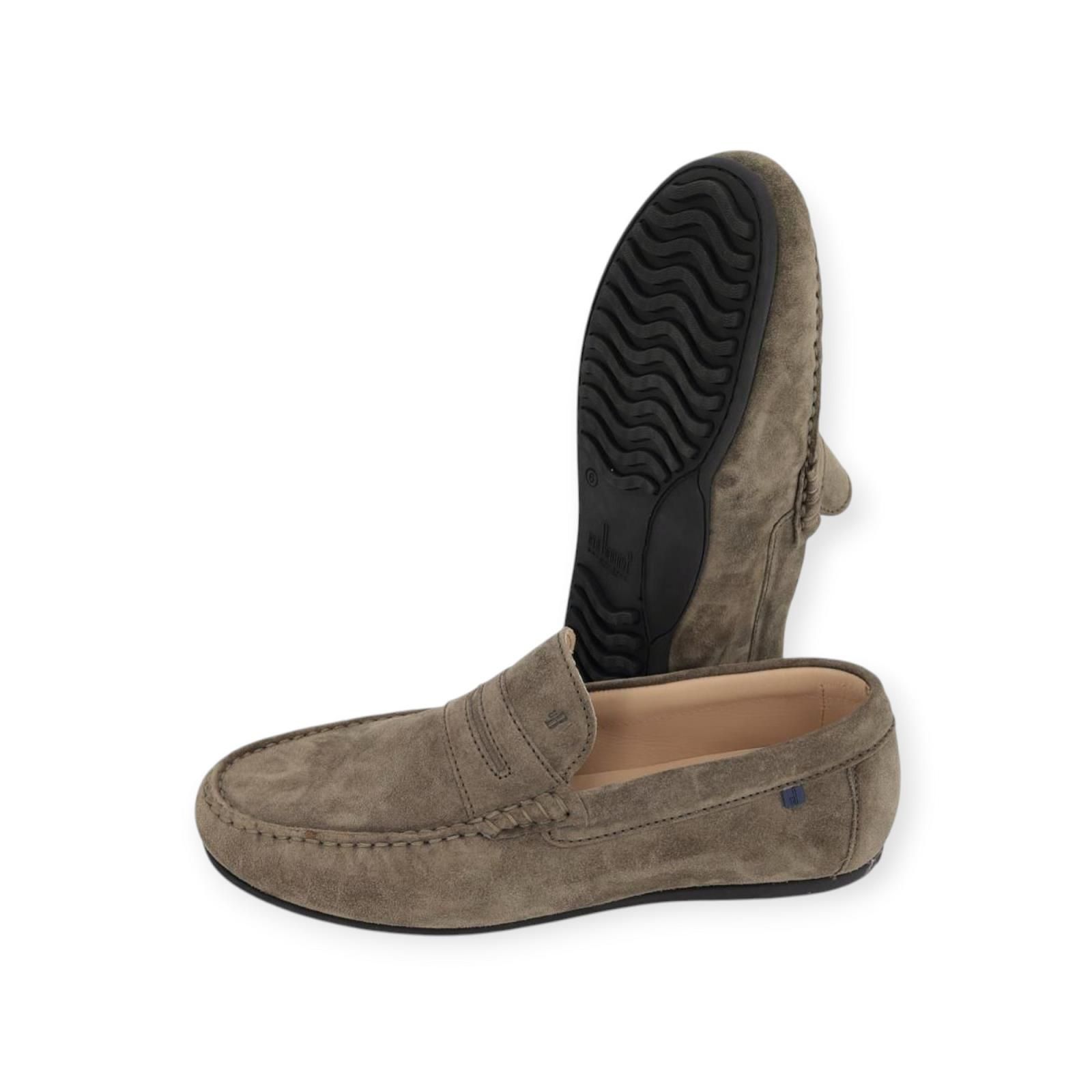 Deze zomerse Elba heren loafer 01.12 van Van Bommel is gemaakt volgens de authentieke mocassin maakwijze. Het groen suède van deze loafer heeft een mooie rijke vleug. De schoen is aan de binnenkant afgewerkt met topkwaliteit kalfsleer. De lederen inlegzool is aan de onderkant afgewerkt met een comfortabel laagje foam en is niet uitneembaar. Achter op de schoen is een rubber labeltje in de naad meegestikt met daarop het klassieke VB logo. Combineer deze schoenen met de bijgepaste riem.