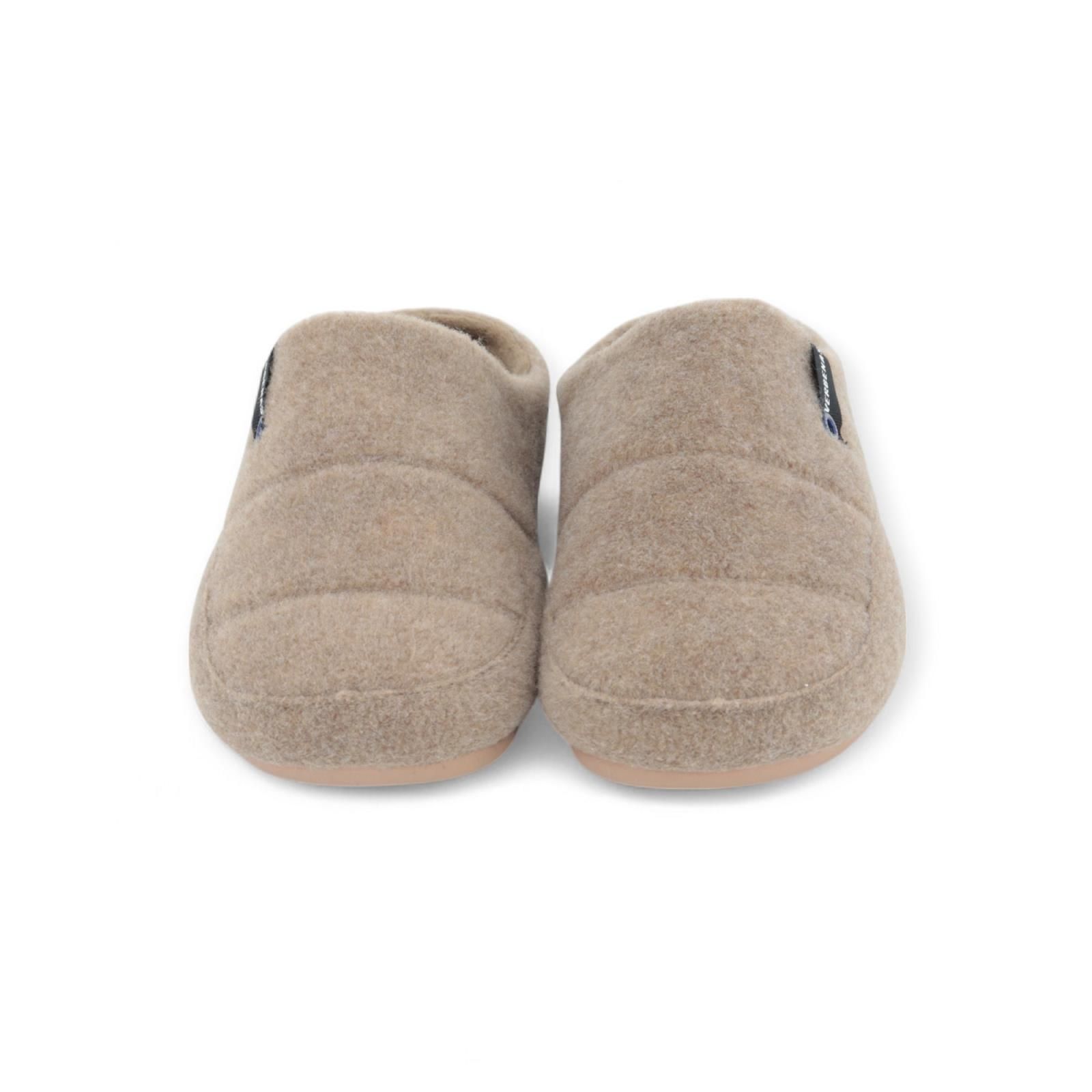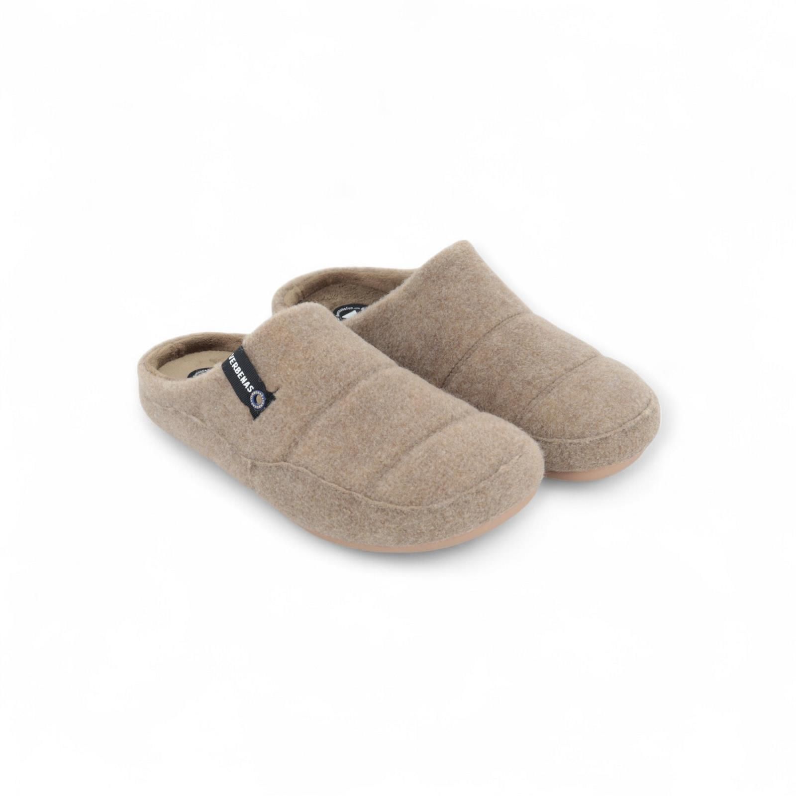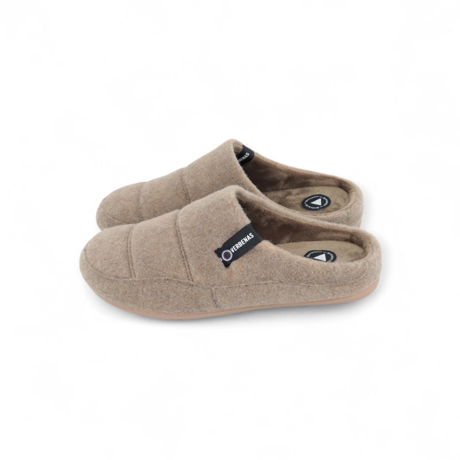 Pantoffel Earth Picos van Verbenas voor heren. Deze pantoffel is in taupe stof met stiksels. Voelt aangenaam warm en is op een antislip zool.