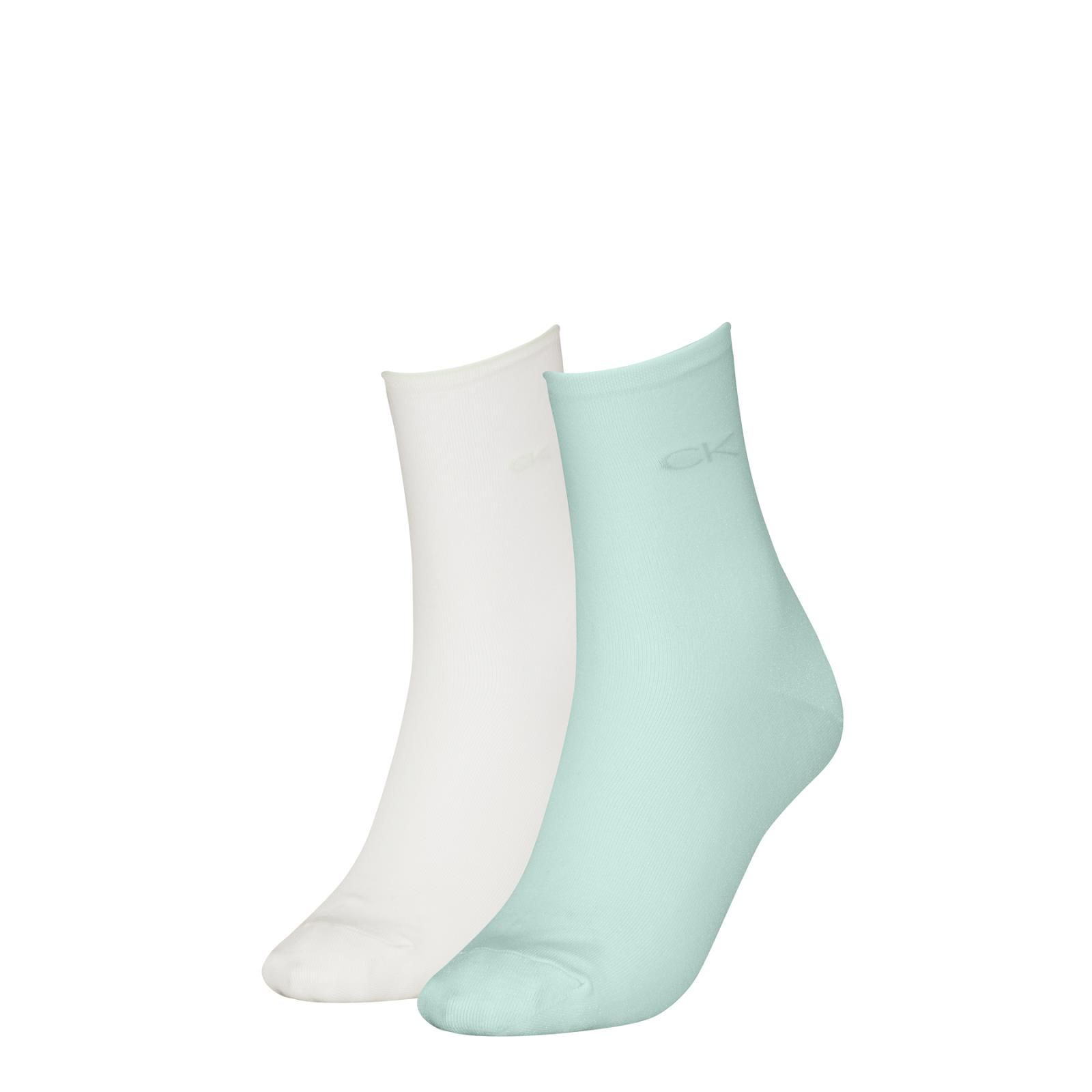 Sok van Calvin Klein voor dames. Zit per 2 in een pakje waarvan 1 lichtgroen met shining glitter en 1 effen wit met groen randje. Is 1 maat van 36-41.