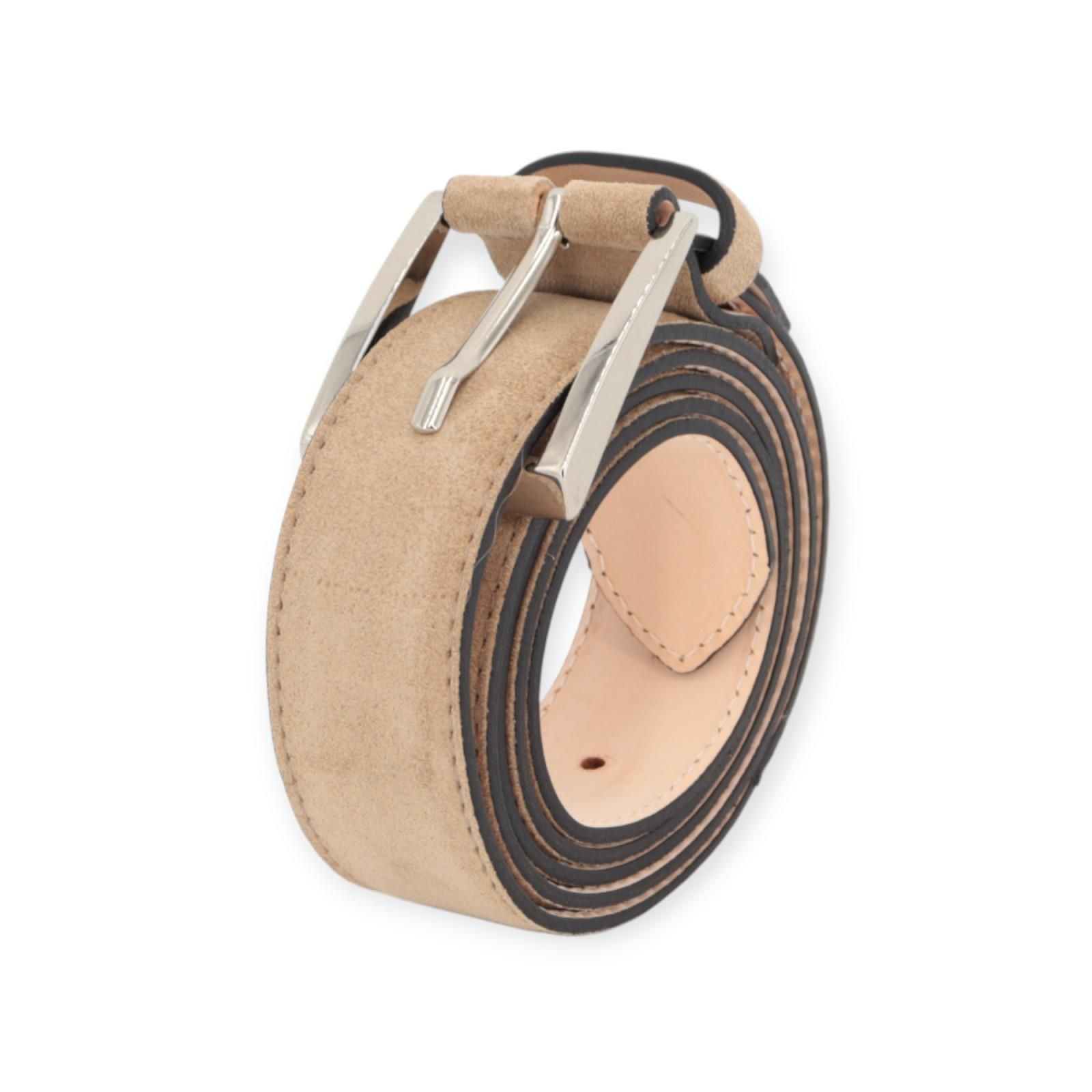 Riem van Giorgio voor heren. Deze riem is in beige suède en heeft een lengte van 115cm met metalen sluiting. Wij kopen steeds de grootste riem en passen uw riem aan op maat in de winkel. Combineer deze riem met bijpassende schoenen.
