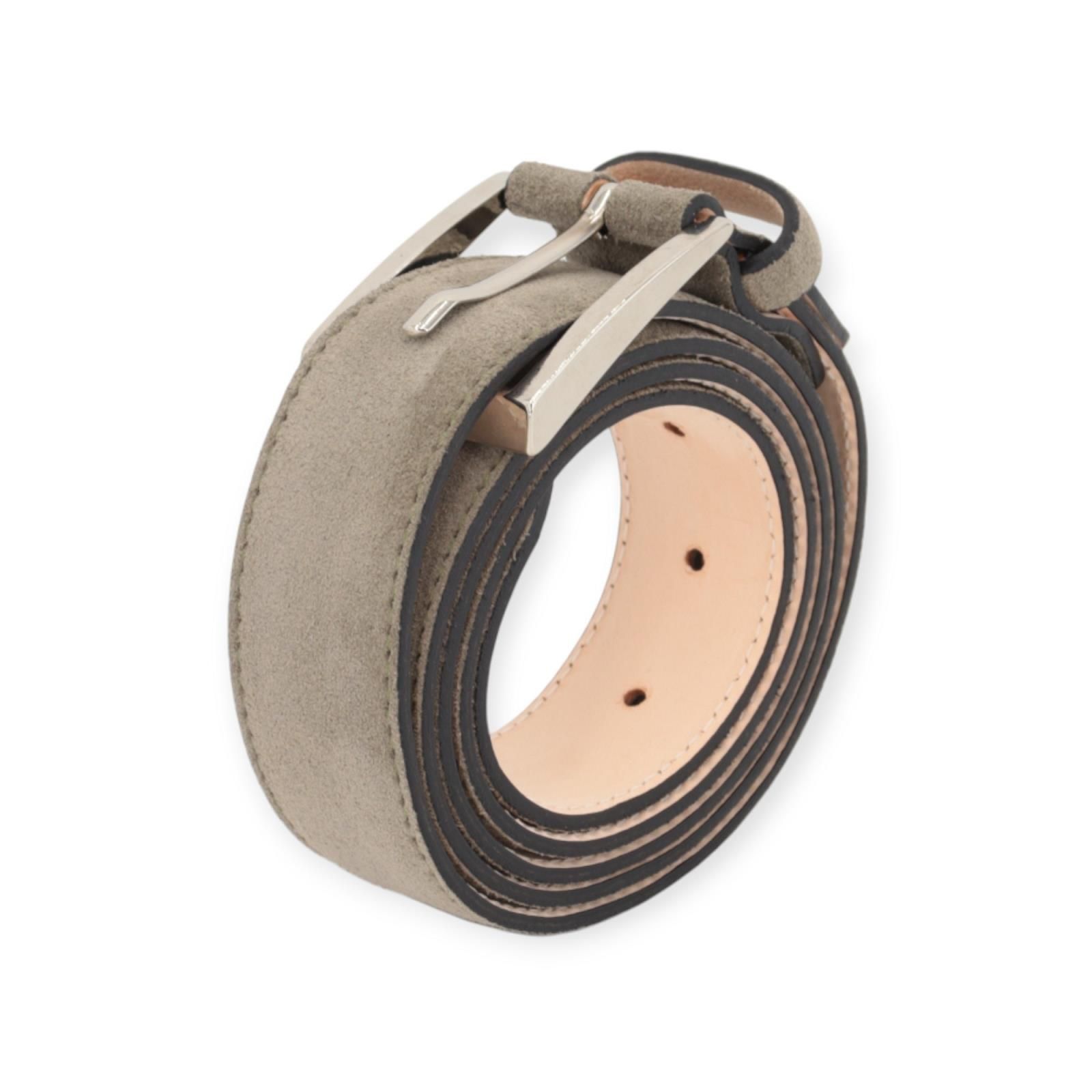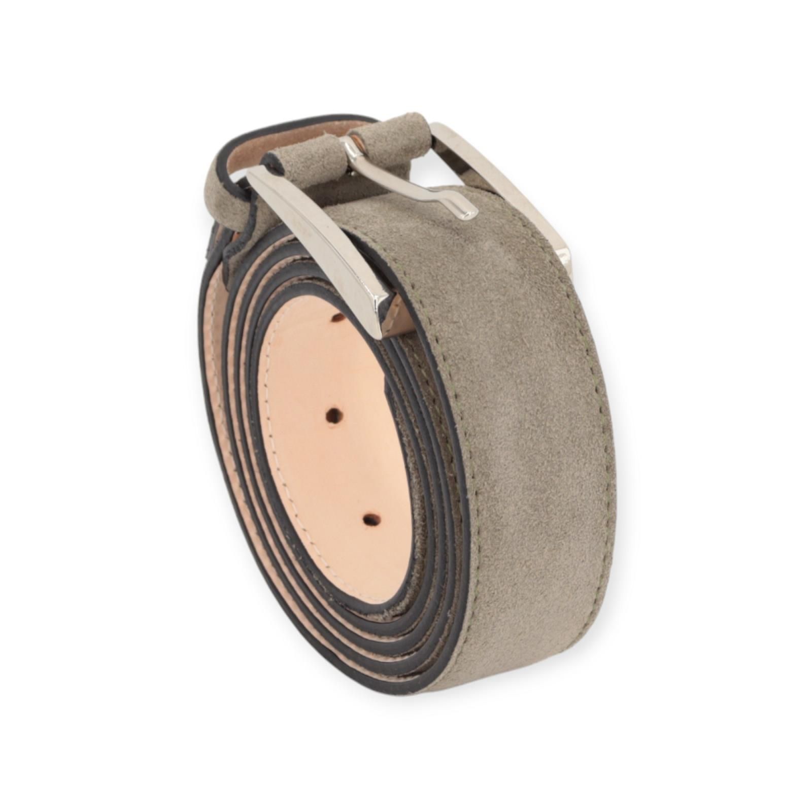 Riem van Giorgio voor heren. Deze riem is in kaki suède en heeft een lengte van 115cm met metalen sluiting. Wij kopen steeds de grootste riem en passen uw riem aan op maat in de winkel. Combineer deze riem met bijpassende schoenen.