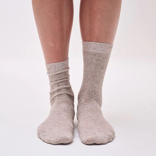 Erina Socks van MP Denmark voor dames. Deze zachte wollen sokken zijn in blauw kleur. Heeft een brede geribbelde boord met glitter en een smal glitterdetail bij de tenen. Gemaakt van 77% merino wol die zachter en dunner is dan gewoon wol. Beschikbaar in 2maten: 37-39 en 40-42.