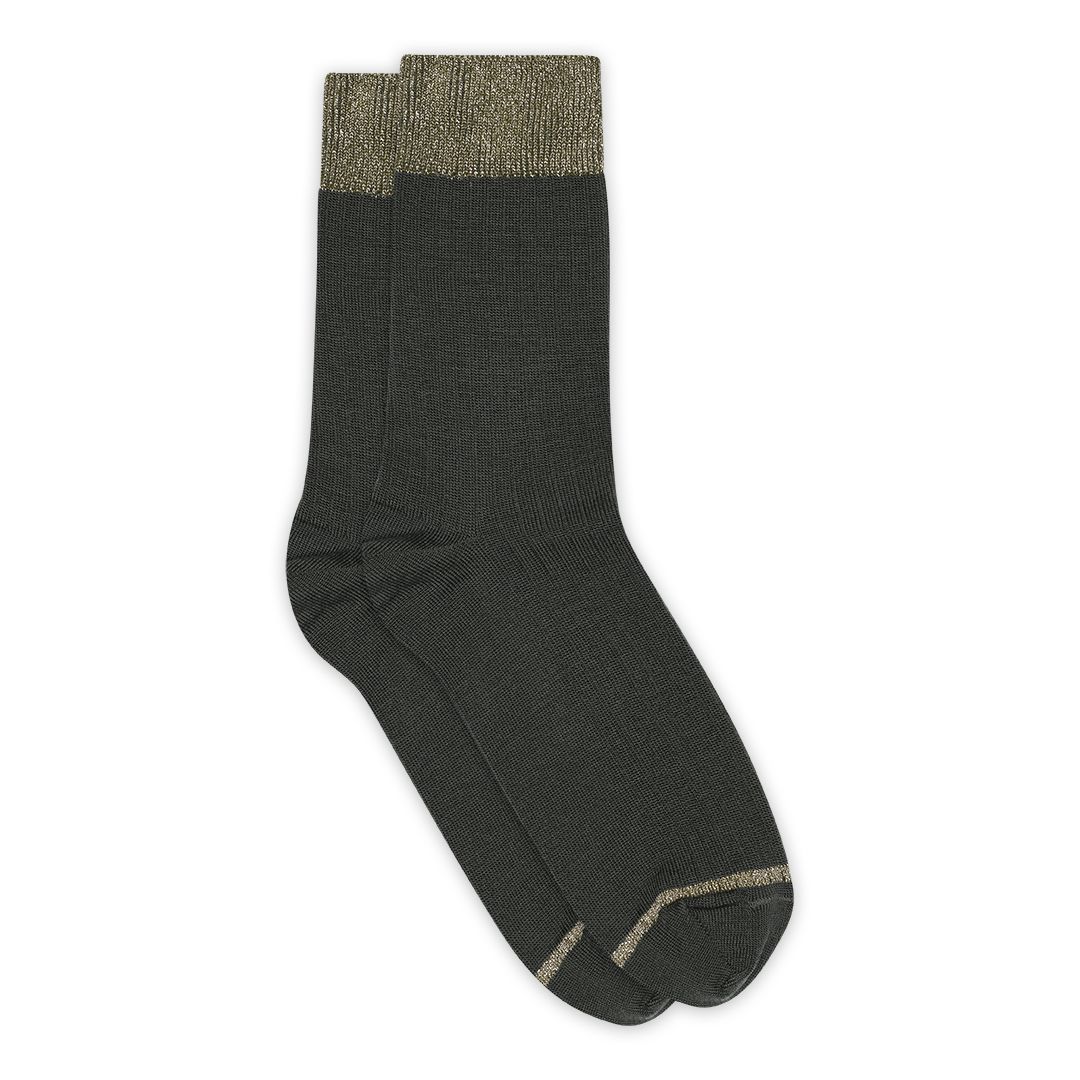 Erina Socks van MP Denmark voor dames. Deze zachte wollen sokken zijn in groen kleur. Heeft een brede geribbelde boord met glitter en een smal glitterdetail bij de tenen. Gemaakt van 77% merino wol die zachter en dunner is dan gewoon wol. Beschikbaar in 2maten: 37-39 en 40-42.