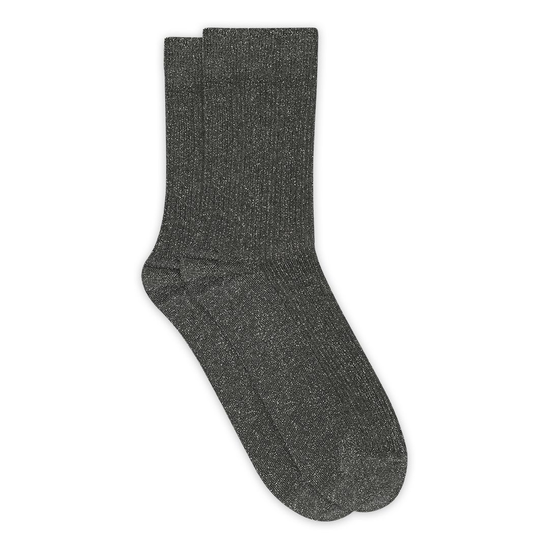 Sokken Julia van MP Denmark voor dames. Deze prachtige kousen in grijs glitter. Hebben een brede rib aan de bovenkant met een golvende rand. Beschikbaar in 2 maten: 37-39 en 40-42.
