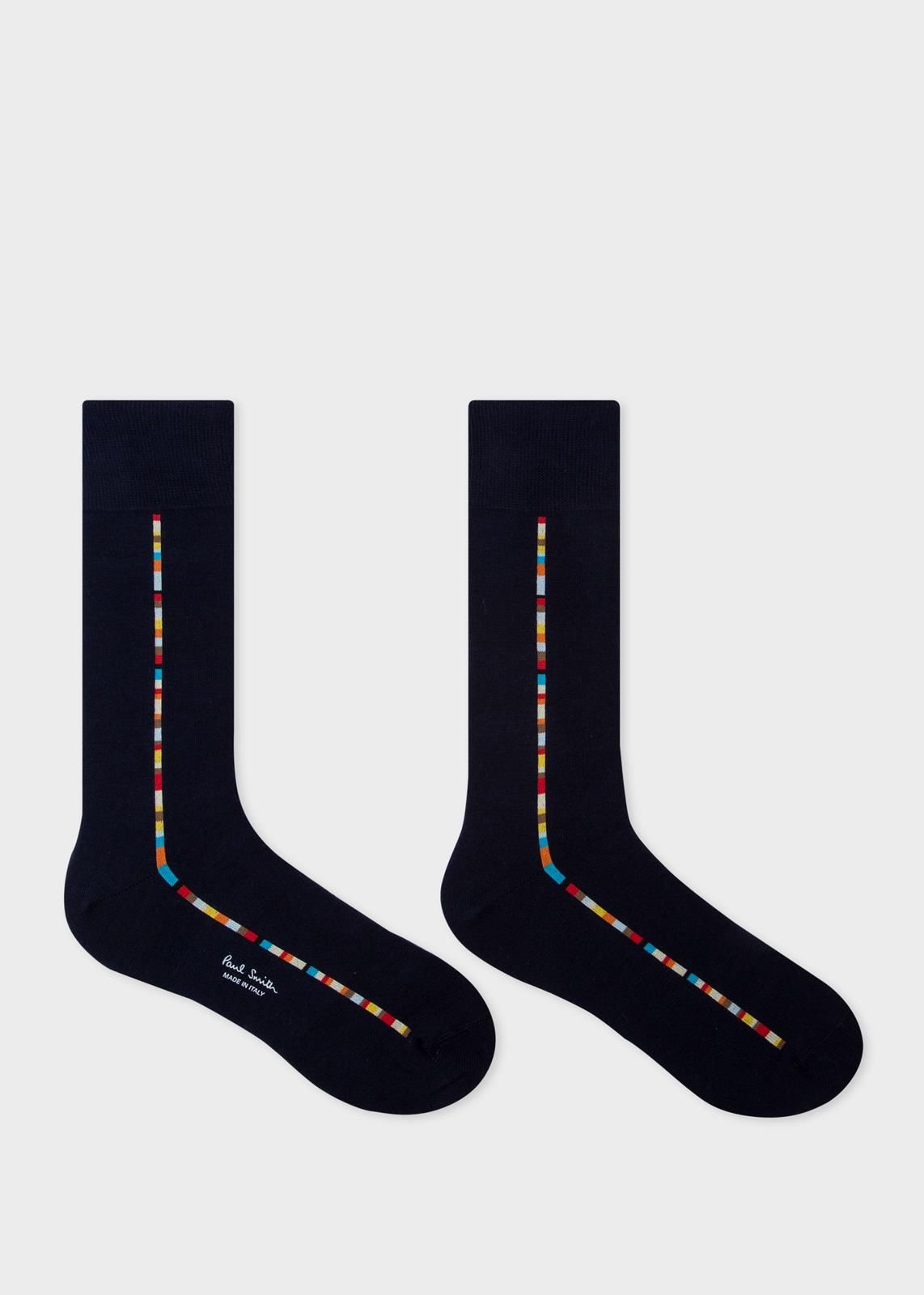 Sokken Central Signature Stripe van Paul Smith voor heren. Deze sokken zijn gemaakt in Italië van een zachte katoenmix. Zijn voorzien van de iconische Paul Smith Central 'Signature Stripe' in het midden van de kous. Is in klassiek blauw kleur. Is one size van maat.