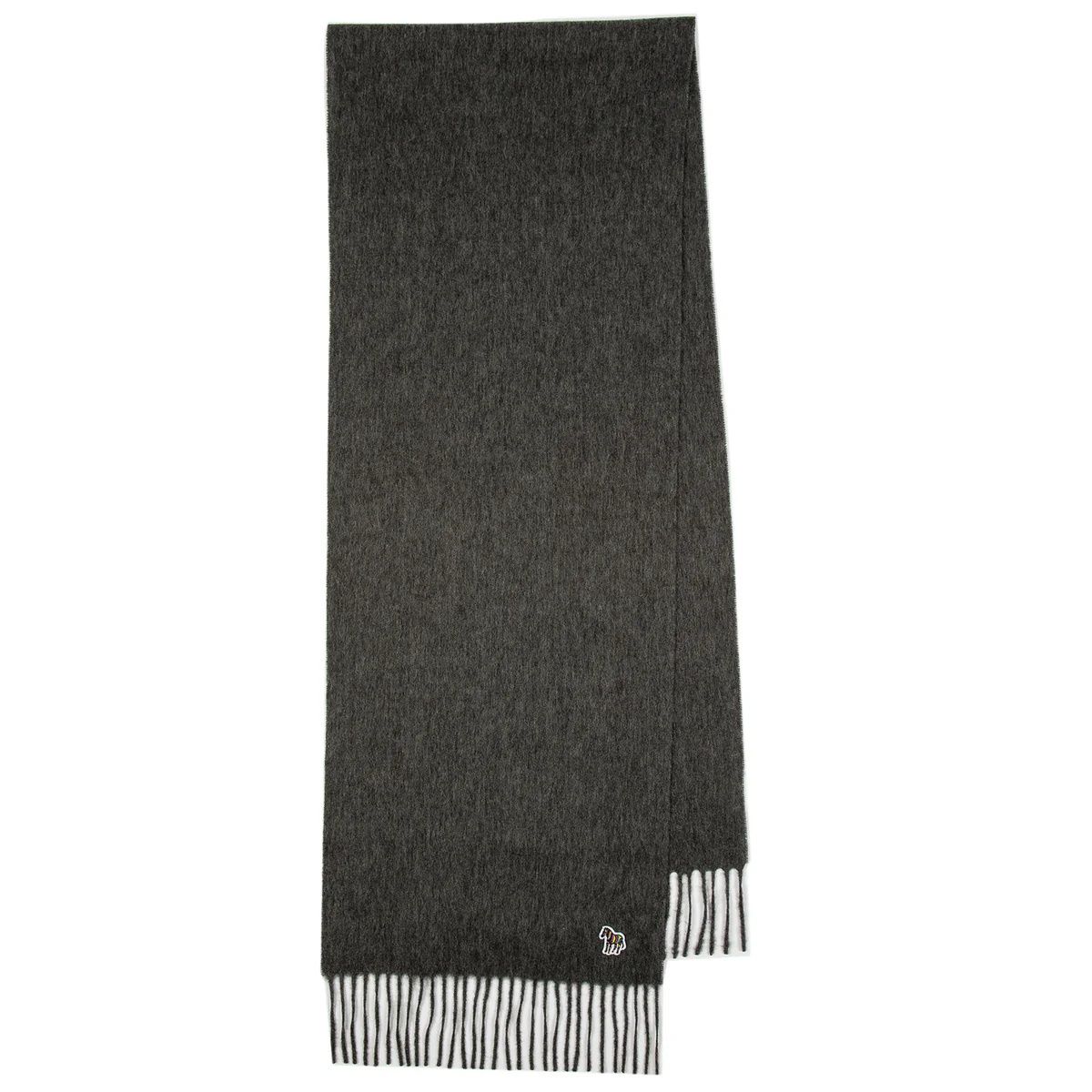 Sjaal Zebra van Paul Smith voor heren. Deze luxe sjaal is gemaakt van 100% zacht grijs wolmix met een geborstelde afwerking. Hij is afgewerkt met een geborduurd zebralogo van Paul Smith en kwastjes aan de uiteinden. Deze lange sjaal is een mooi perfect accessoire bij je wintergarderobe. Combineer deze met bijpassende muts.