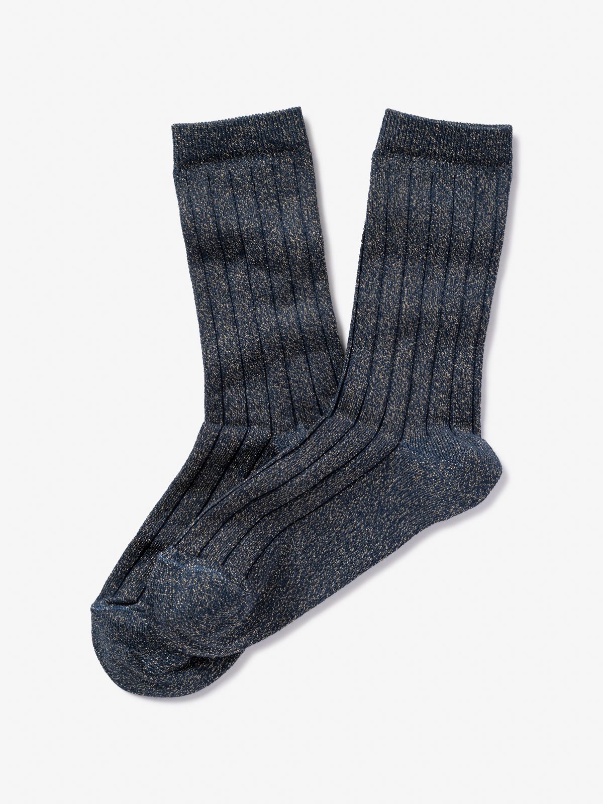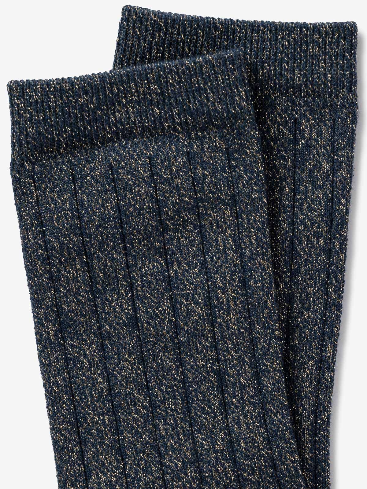 Sokken Micky van Royalties voor dames. Deze sokken zijn in blauw glitter met contrasterende ribbels. Combineer ze met mocassins of in je favoriete schoenen. Is one size van 36-41.