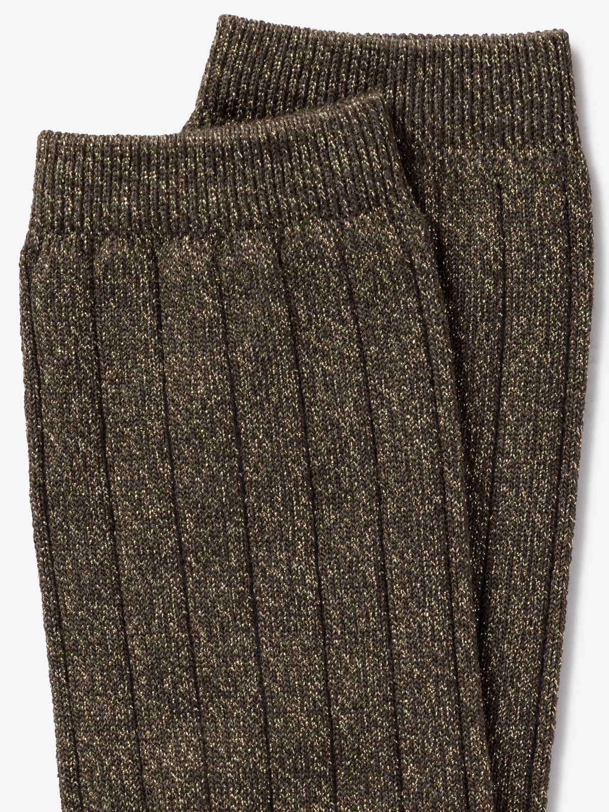 Sokken Micky van Royalties voor dames. Deze sokken zijn in bruin glitter met contrasterende ribbels. Combineer ze met mocassins of in je favoriete schoenen. Is one size van 36-41.