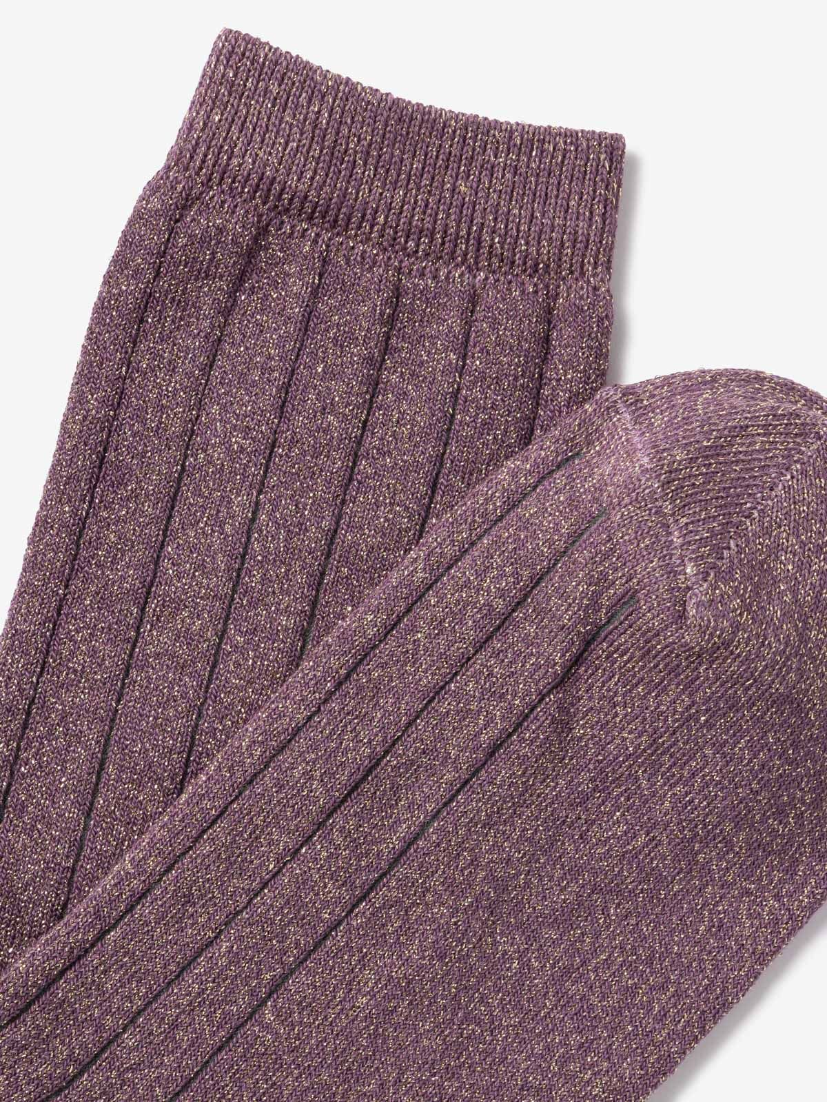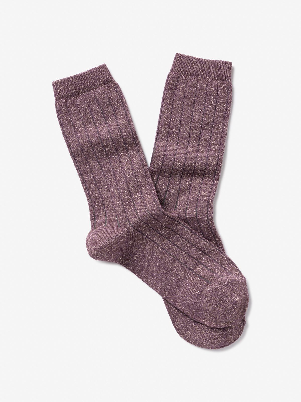 Sokken Micky van Royalties voor dames. Deze sokken zijn in lila glitter met contrasterende ribbels. Combineer ze met mocassins of in je favoriete schoenen. Is one size van 36-41.