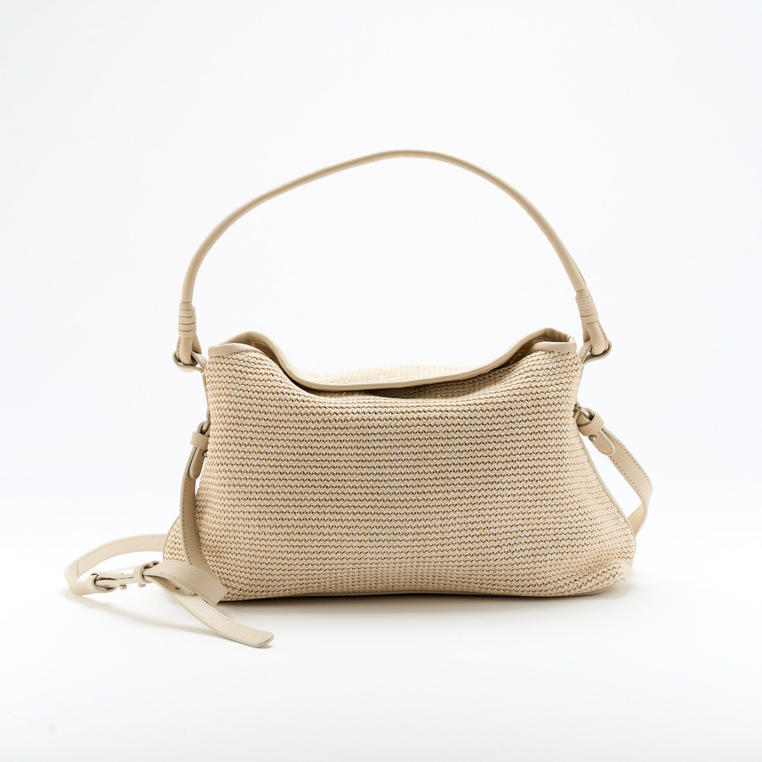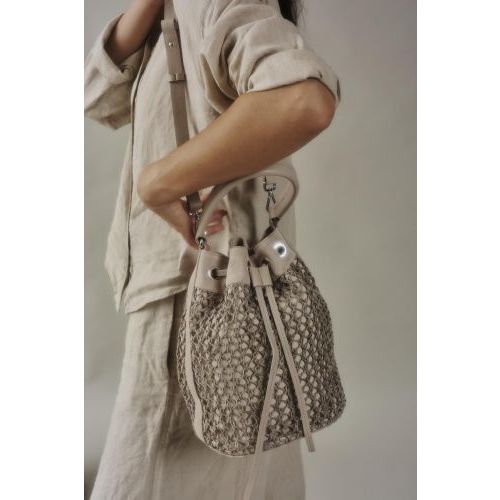 NIEUW Softwaves Kristi Tresvelt hand-en schoudertas in offwit leer raffia.
