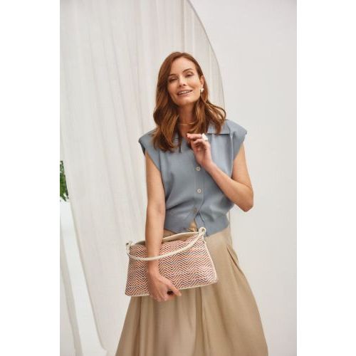 Hand-en schoudertas Kristel Tresvelt van Softwaves voor dames. Deze handtas is gemaakt in offwit leer met raffia. Heeft een enkel handvat en een verstelbare, afneembare schouderband. Is mooi afgesloten met een flap en magneetsluiting. Heeft binnenin een ruim open vak met 2 steekvakjes waarvan 1 met ritssluiting.
