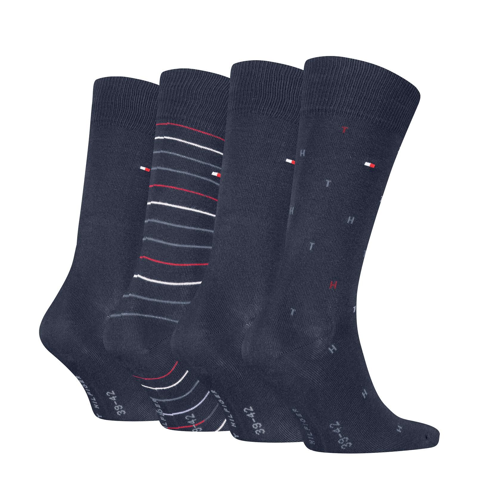 Sokken 4Pack Giftbox Tommy Hilfiger voor heren. Deze geklede blauwe sokken zijn vervaardigt uit 69% katoen , 30% Polyamide en 1% Elastaan. Zitten per 4 in een giftbox waarvan 2 paar effen sokken, 1 paar met dot en 1paar met stripe structuur. Is in 2 maten te verkrijgen.