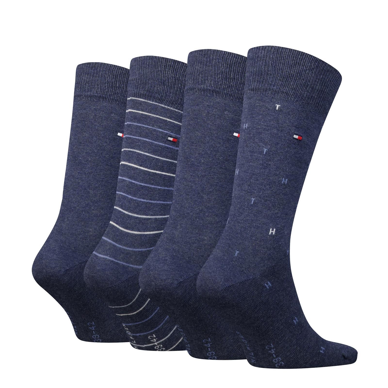 Sokken 4Pack Giftbox Tommy Hilfiger voor heren. Deze geklede jeans sokken zijn vervaardigt uit 69% katoen , 30% Polyamide en 1% Elastaan. Zitten per 4 in een giftbox waarvan 2 paar effen sokken, 1 paar met dot en 1paar met stripe structuur. Is in 2 maten te verkrijgen.