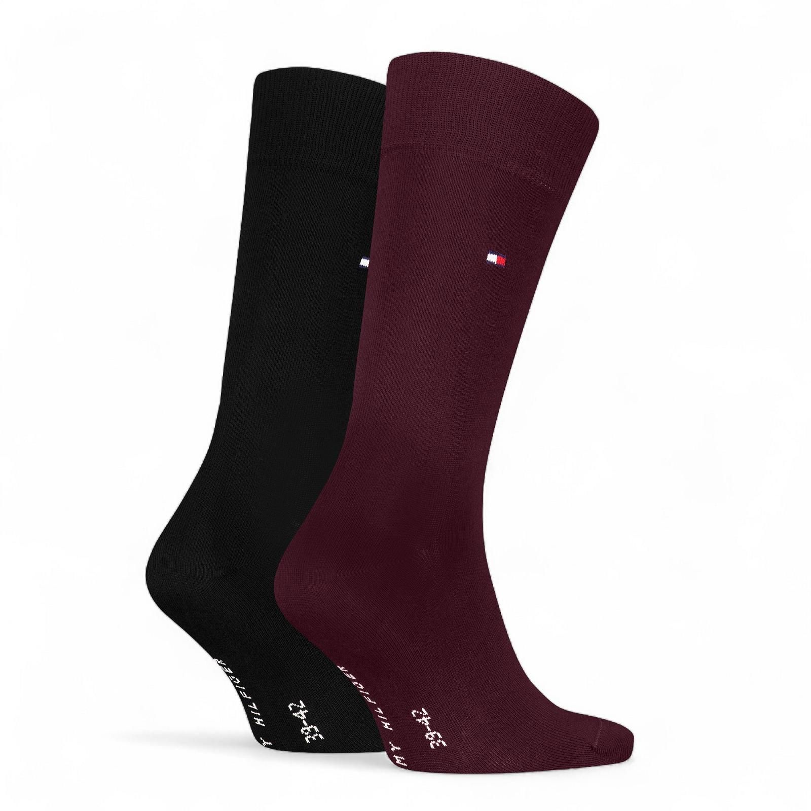 Sokken classic van Tommy Hilfiger voor heren. Deze geklede sokken zijn vervaardigt uit 75% katoen , 23% Polyamide en 2% Elastaan. Zitten per 2 in een pak (bordeaux en zwart) en is in 2 maten te verkrijgen.