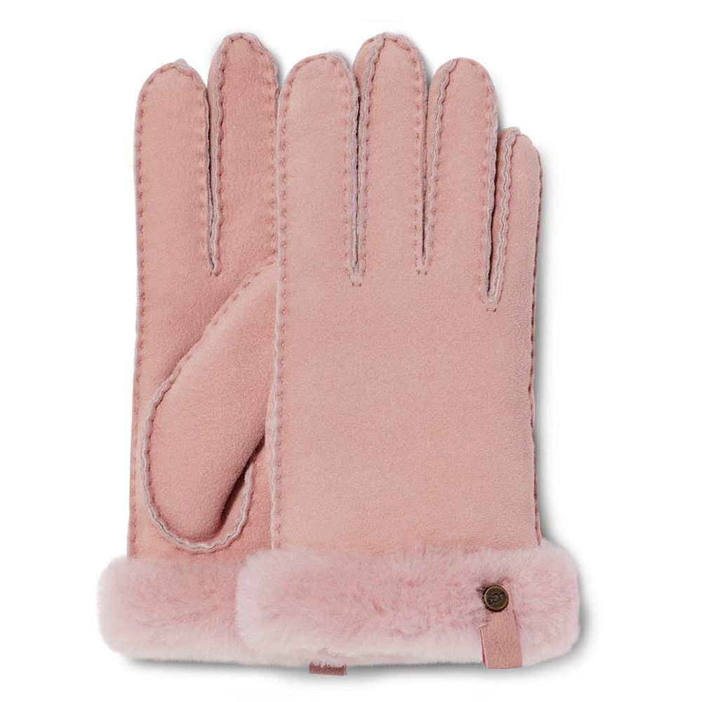 Handschoen Shorty Cuff Glove van UGG voor dames. Deze waterbestendige handschoenen in roze suède met een schapenvacht en leren versiering. Houdt je handen het hele seizoen warm en comfortabel door het wol binnenin Ze vormen een perfecte combinatie met Classic-laarzen.