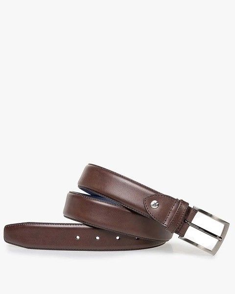 Riem De Belter 32.86 van Van Bommel voor heren. Deze riem is in donkerbruin Italiaans kalfsleer met een donker blauwe binnenvoering. Wij kopen steeds maat 115 en passen dit voor u graag aan op maat. Combineer ze met het zelfde kleur schoenen. Combineer deze met bijpassende schoen.