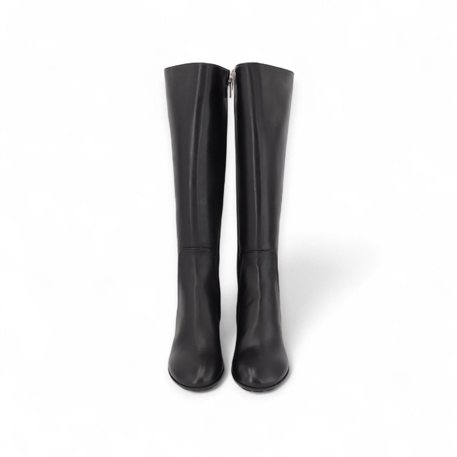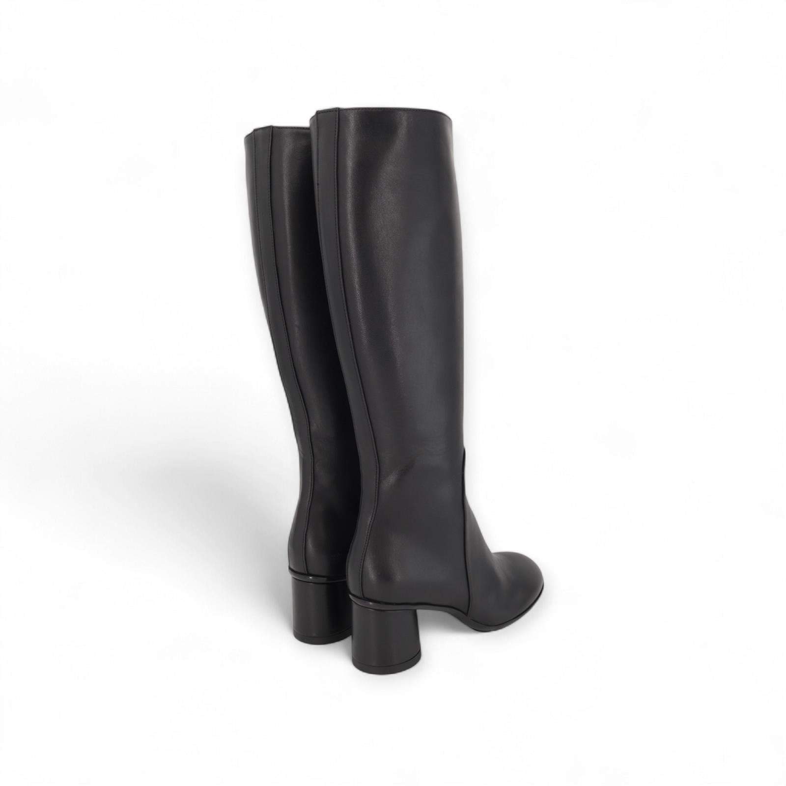 Laars Curvy Boot van AGL voor dames. Deze elegante laars is in zwart leer. Heeft een ronde neus met stiksel rond de enkel. Is op een mooie ronde hak van 5-5,5cm hoog. Heeft een volledige ritssluiting aan de zijkant.
