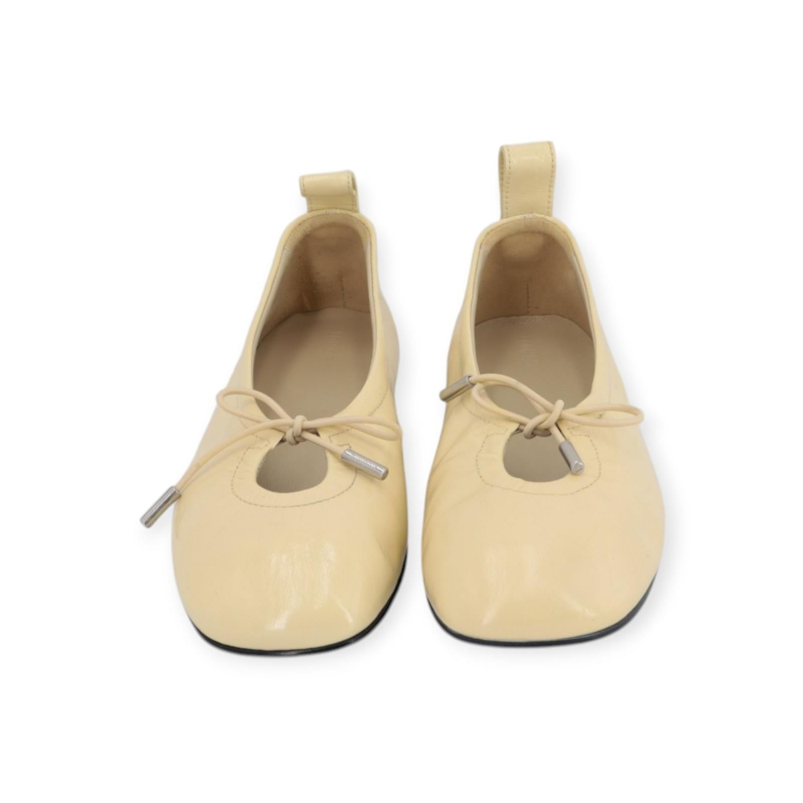 Ballerina Rosalind van Alohas voor dames. Deze ballerina is in licht geel elastisch leer met aan de wreef een trekkoord. Deze ballerina heeft een elastische achterkant en flexibele zolen waardoor ze zeer comfortabel aanvoelen.