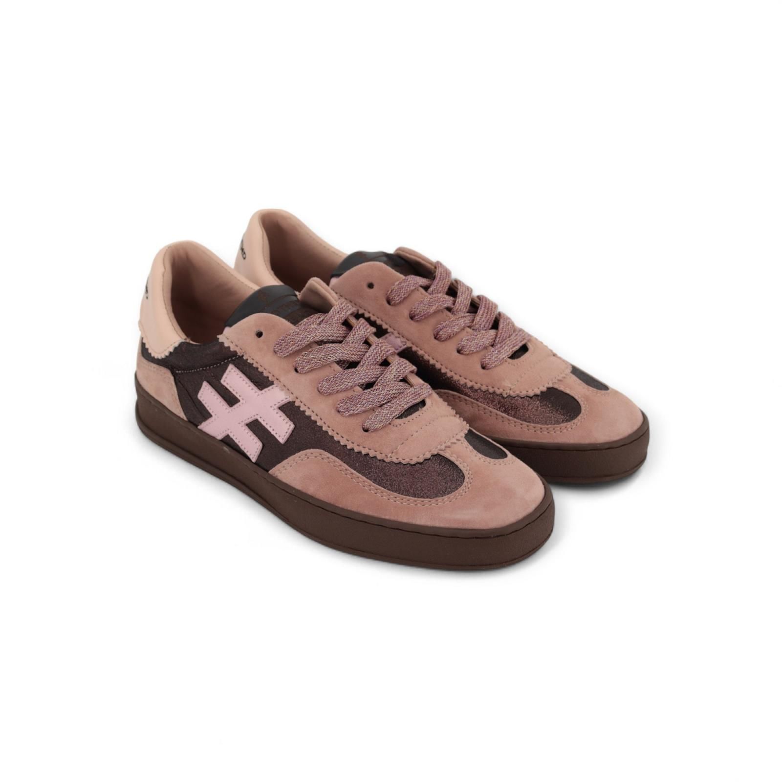 Sneaker Iconic II in roze met bordeaux van Another Trend. Deze sneaker heeft prachtige herfsttinten: is in zachtroze suède met shining bordeaux en bruine flap. Mooi afgewerkt met een hielflap in roze leer en roze veters. Binnenkant is uit leder vervaardigd met een uitneembare zool. Is op een aangename bruine zool.