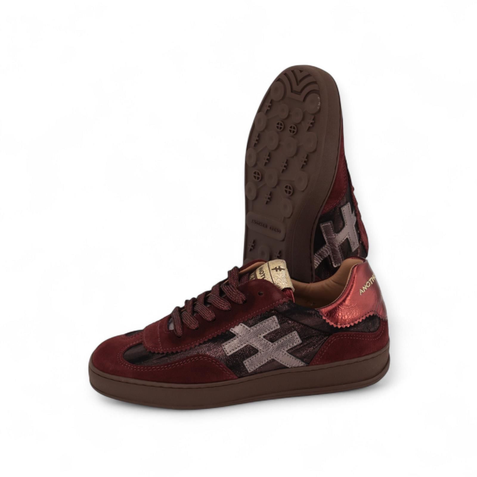 Sneaker Iconic II in bordeaux met zilver van Another Trend. Deze schoen is in bordeaux suède met shining leer. Heeft een zilveren logo aan de zijkant en een bordeaux lakleer hielflap. Binnenkant is uit leder vervaardigd met een uitneembare zool. Is op een aangename bruine gummy zool.