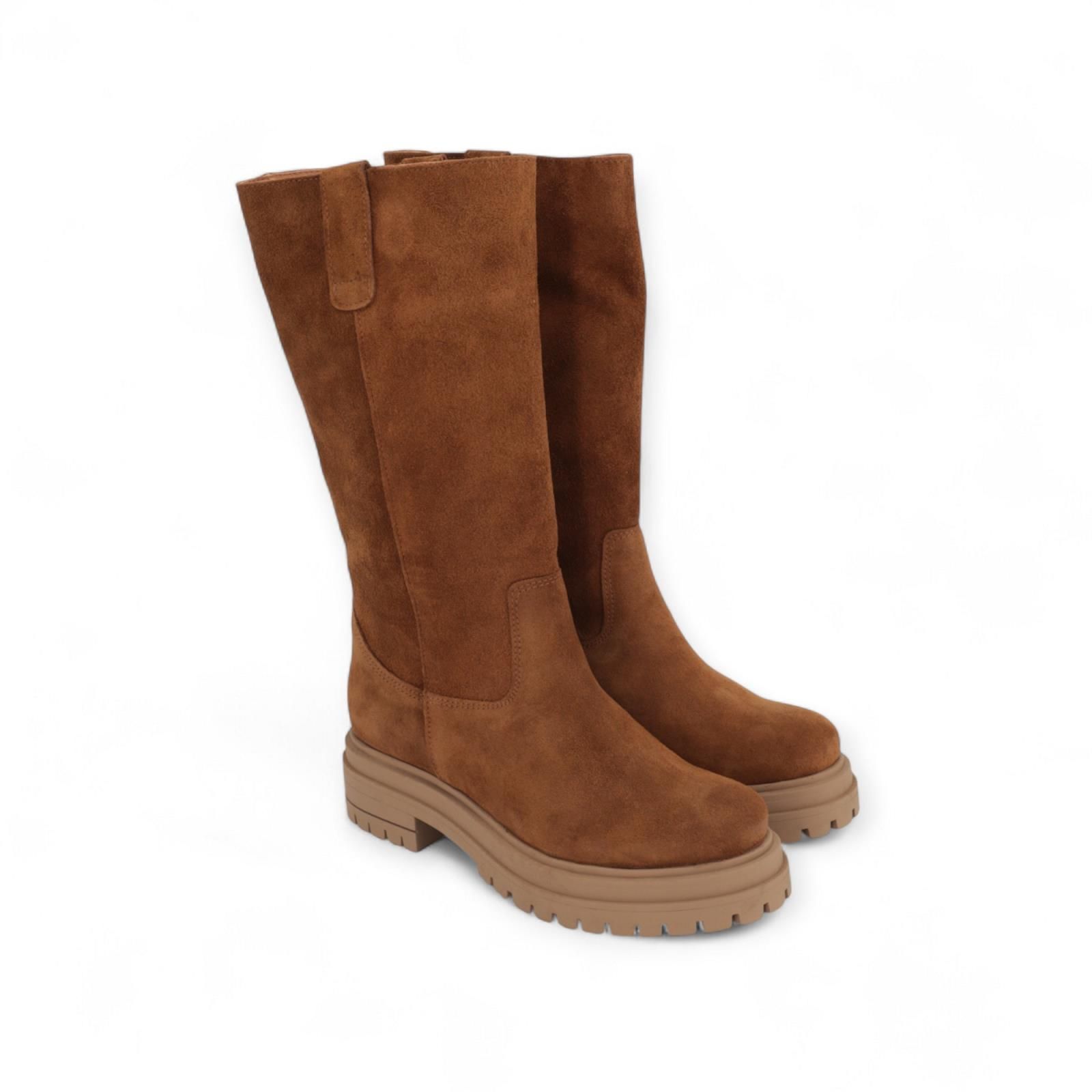 Enkellaarsje 8317 van Belang voor dames. Deze stoere boot is in cognac suède. Is met een ronde neus en een dikke beige zool. Heeft een halve ritssluiting aan de zijkant en 2 lusjes om makkelijk aan te krijgen.