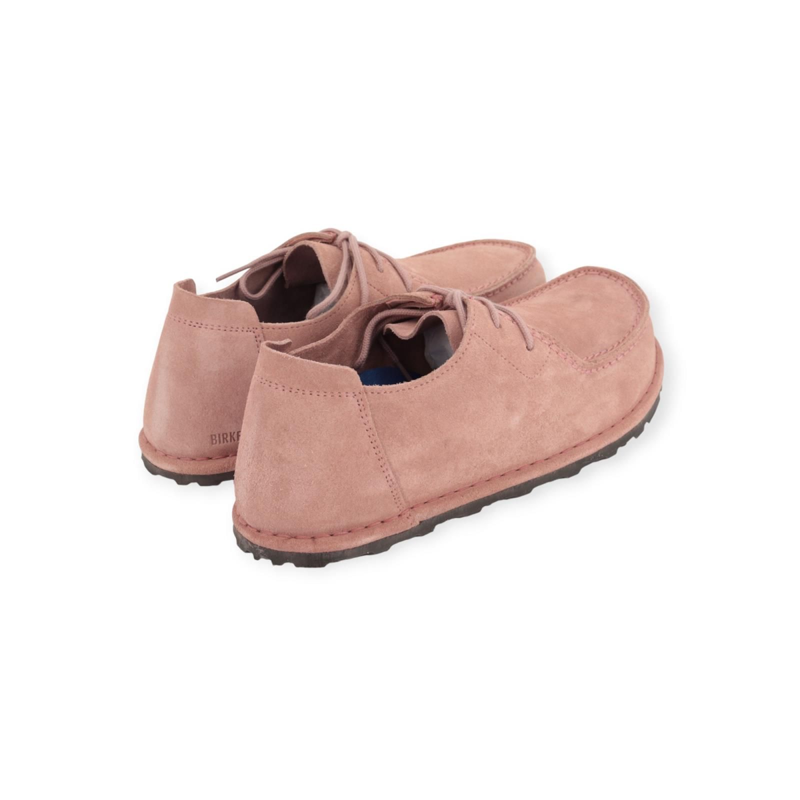 Veterschoen Utti Lace van Birkenstock voor dames. Deze veterschoen is in roze suède in mocassin stijl. De opvallende naad is een echte eyecatcher. De soepele hiellus vergroot niet alleen het draagcomfort, maar vereenvoudigt ook het aan- en uittrekken. Dit ‘narrow fit’ (iets smaller) model heeft een goede pasvorm op een kurken uitneembaar voetbed.