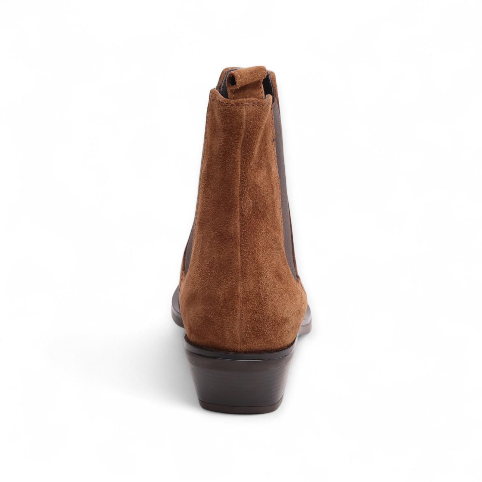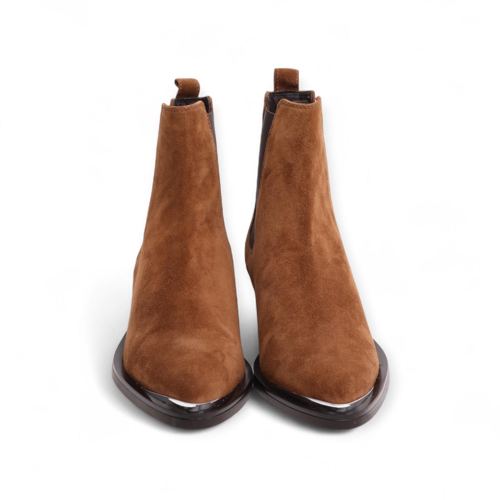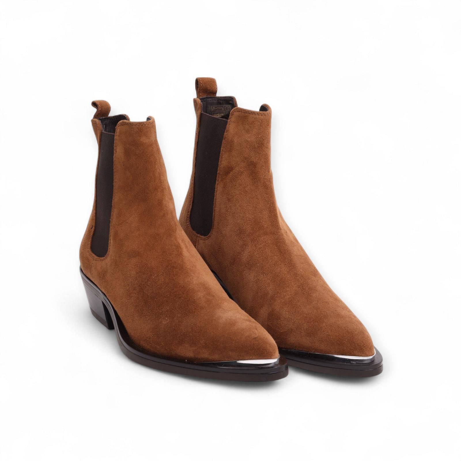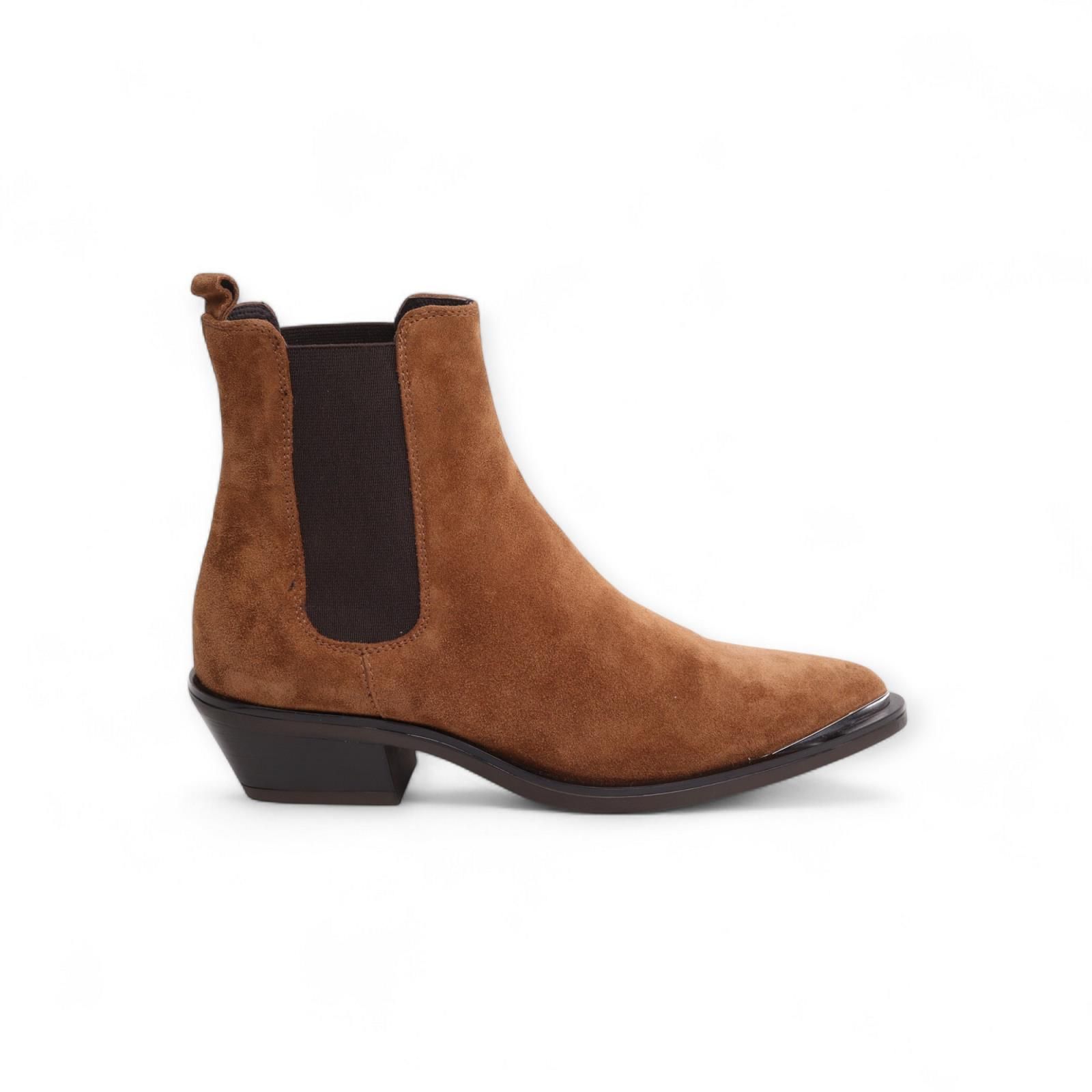 Enkellaarsje Kelly Beat van Carmens voor dames. Dit enkellaarsje heeft een puntig silhouet en geeft een wild western tintje aan het model. Is met 2 rekkers aan de zijkant en een gouden detail aan de neus. Heeft een blokhakje van 3-3.5cm hoog.