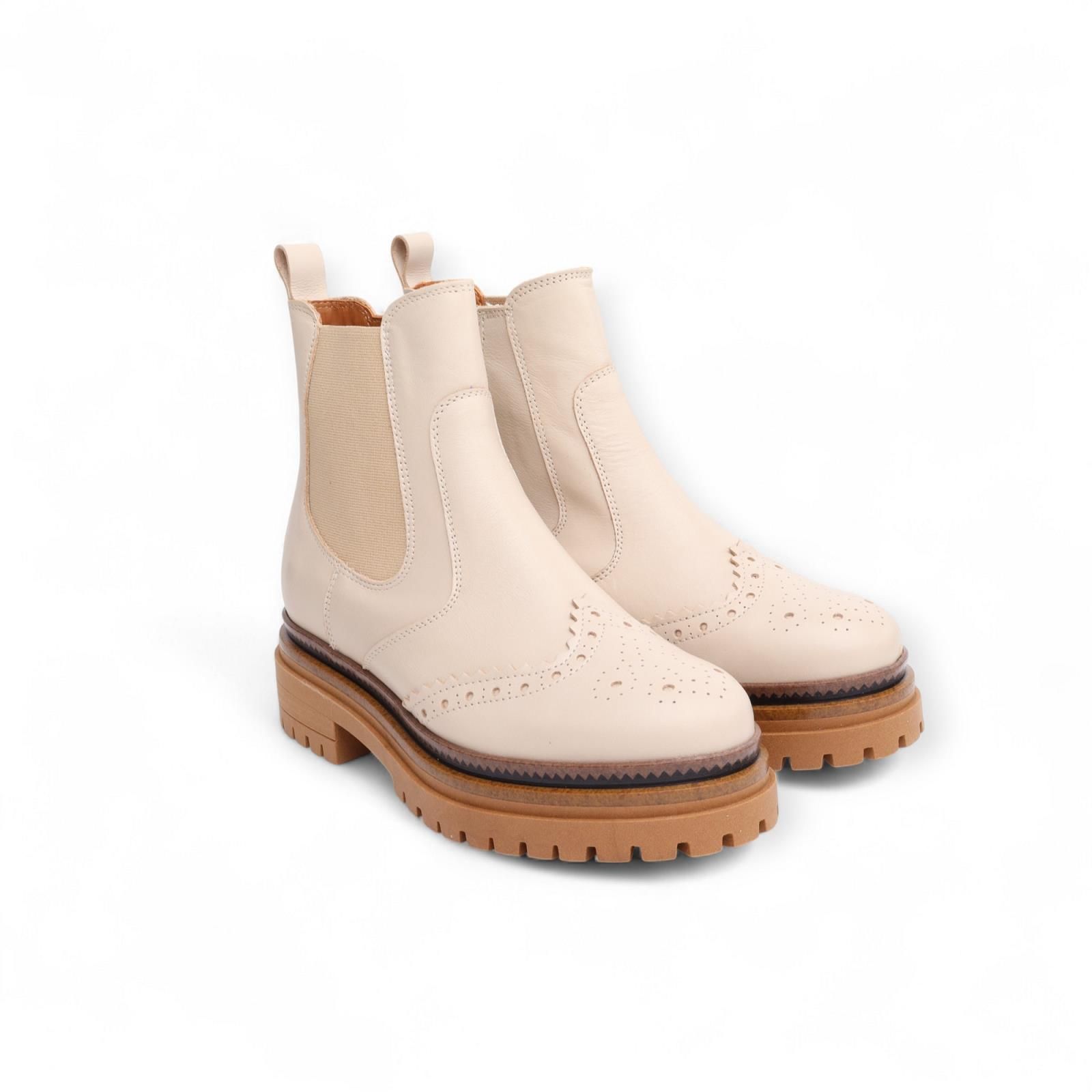Enkellaarsje Fatima van CTWLK voor dames. Dit enkellaarsje is in off wit leder. Heeft 1 rekker aan de zijkant en vetersluiting. . Is mooi licht geperforeerd aan de voorvoet het model elegant maakt. Is op een dikke camelkleurige zool die voor nog meer comfort zorgt.