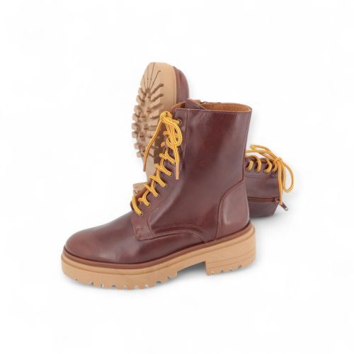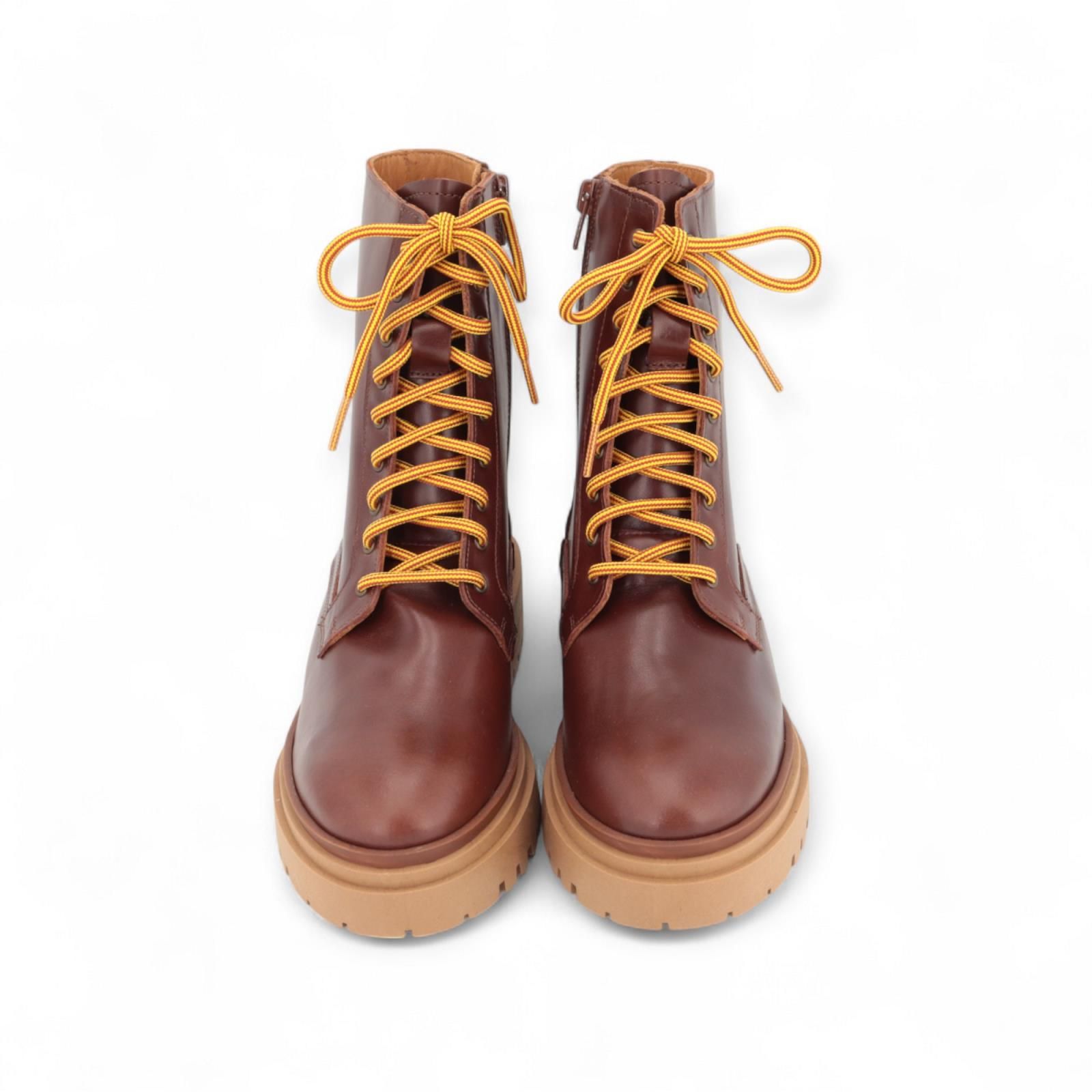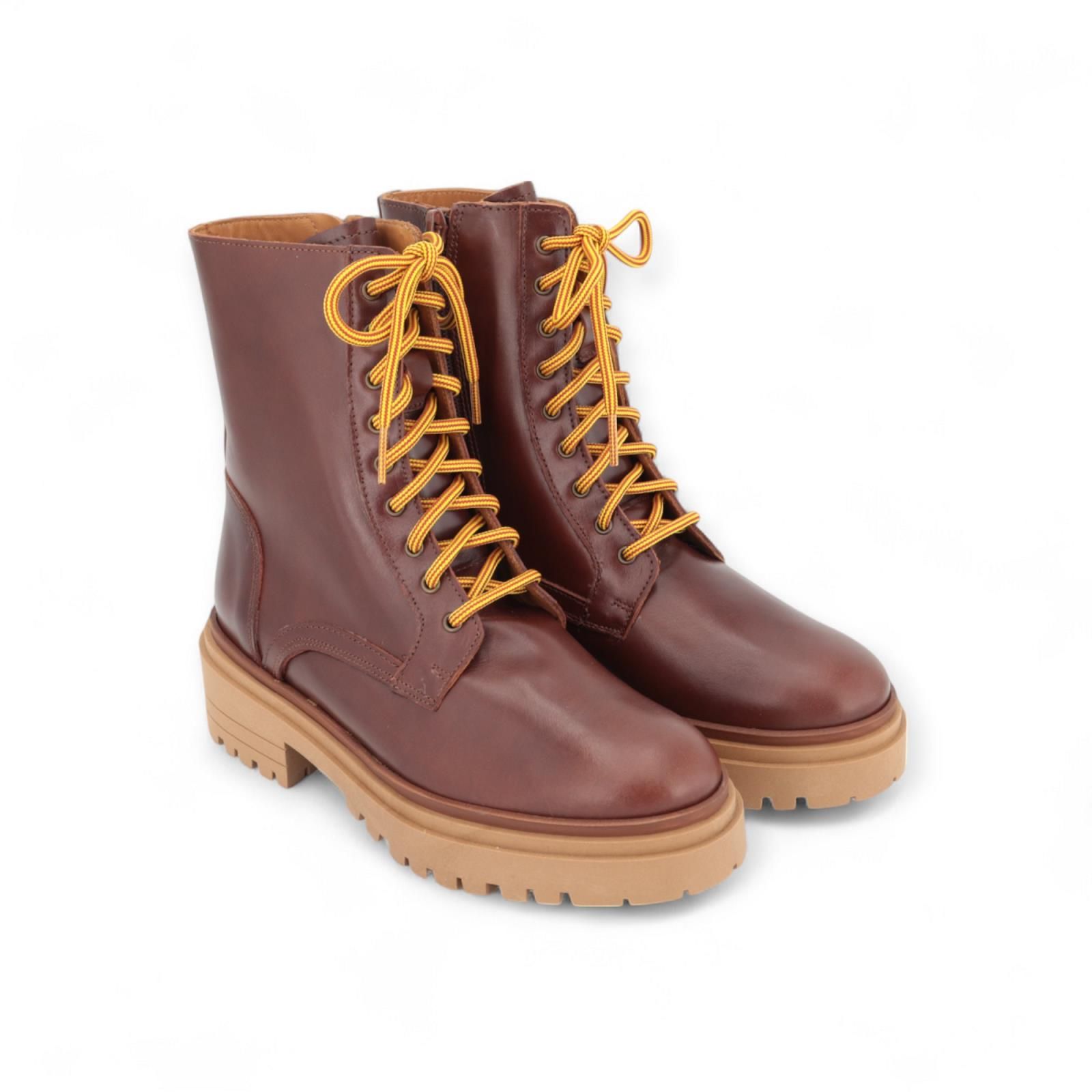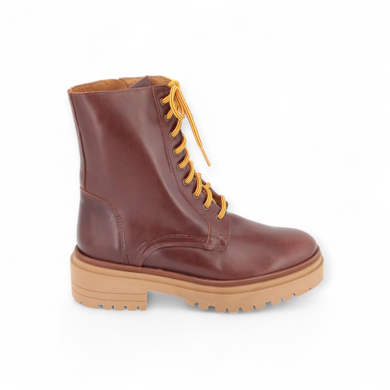 Enkellaars Sergio van CTWLK voor dames. Deze boots is in cognac leer met de typische ‘boots’ veters. Heeft een dikke antislipzool en een ritssluiting aan de zijkant.