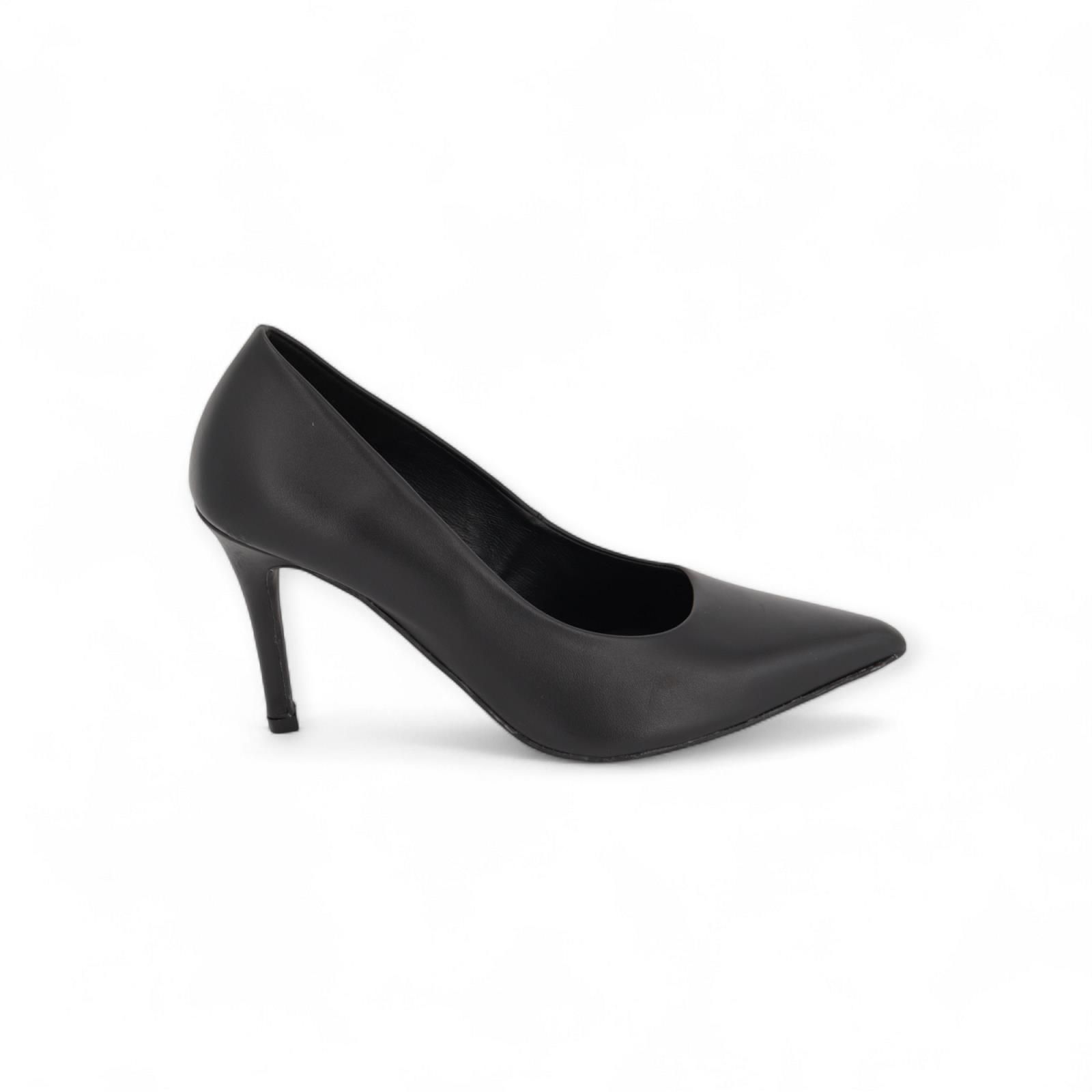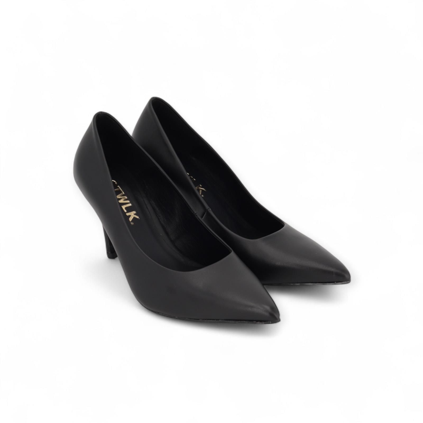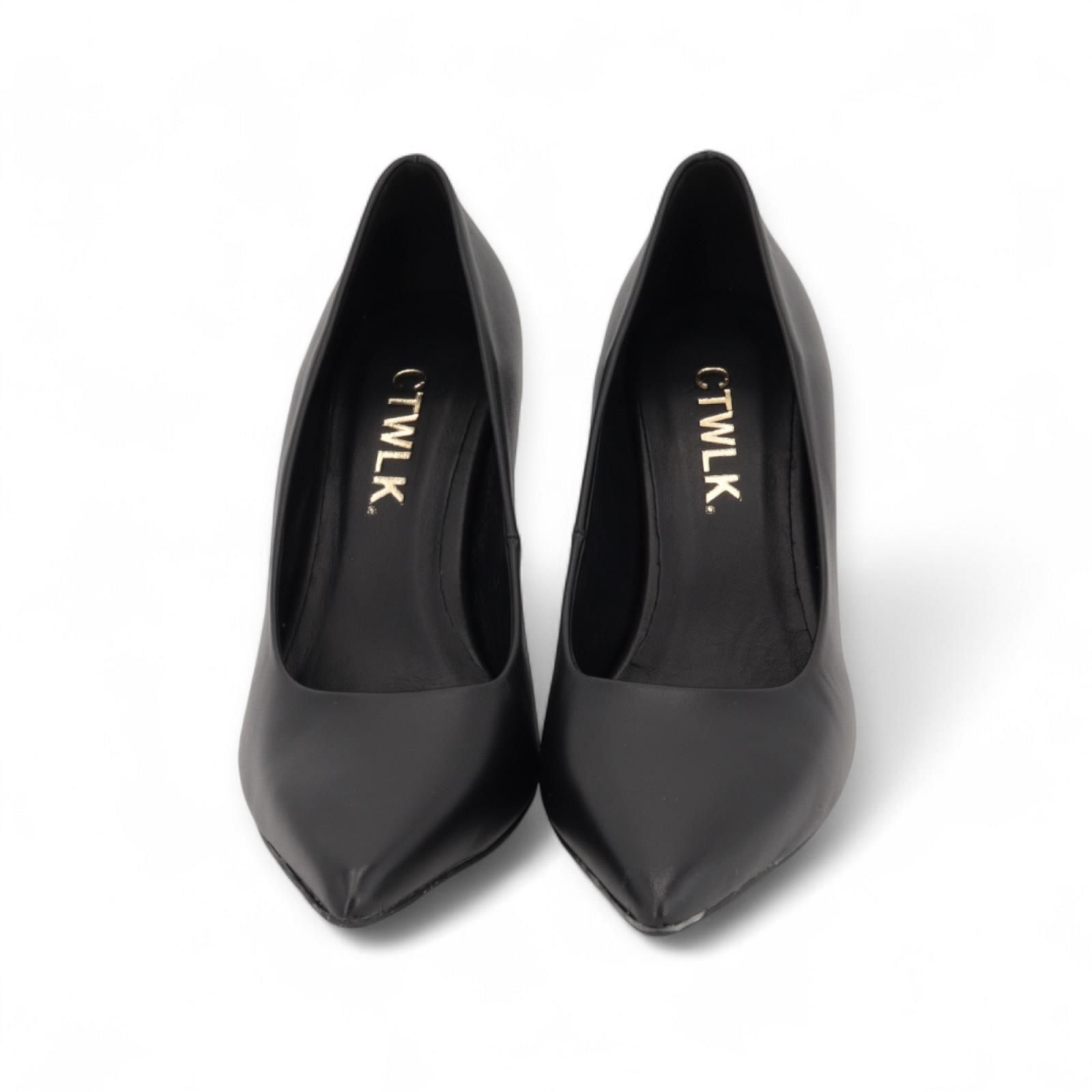 Pump Vabella van CTWLK voor dames. Deze pump is in zwart leer. Heeft een scherpe neus en een fijn naaldhakje van 7-7.5cm hoog.