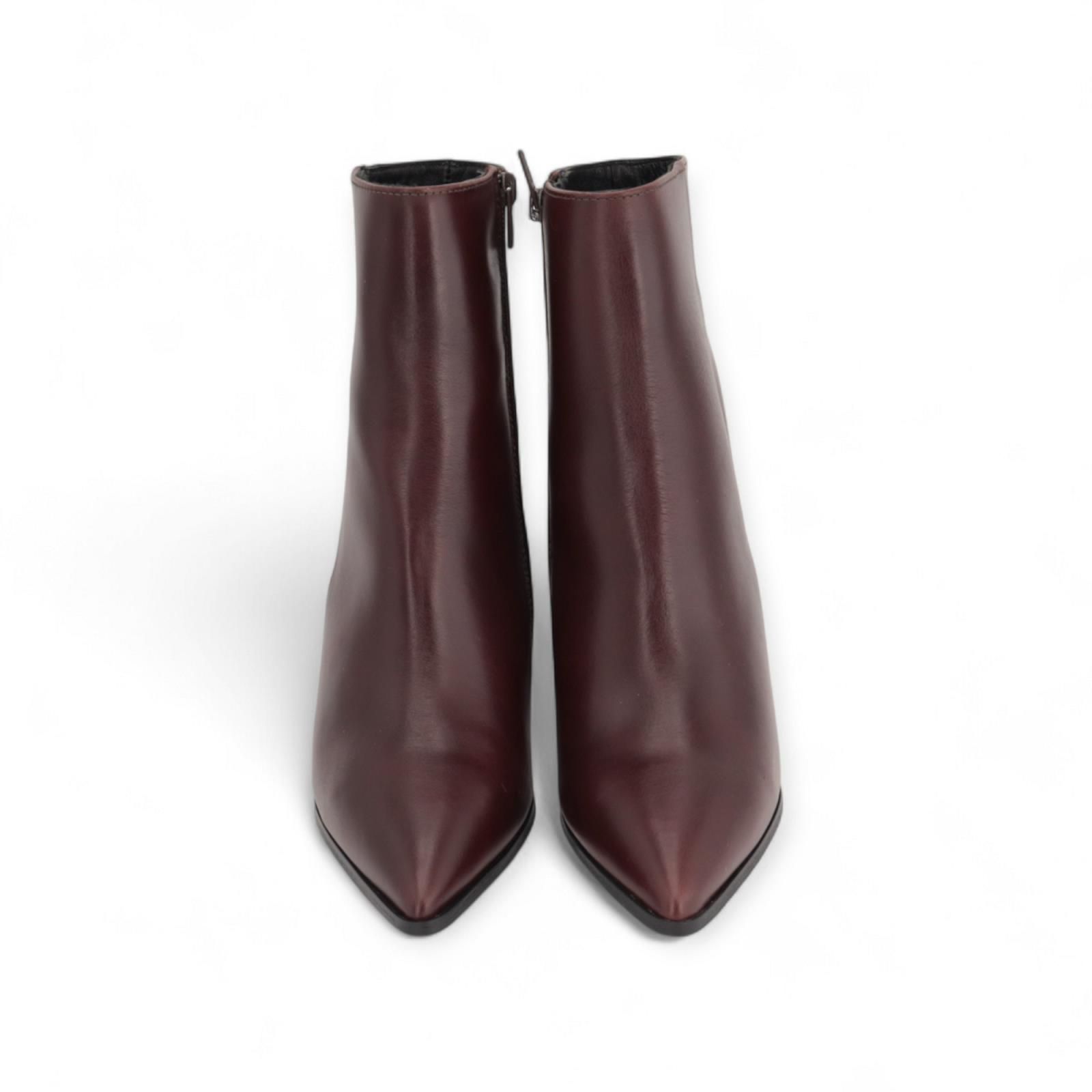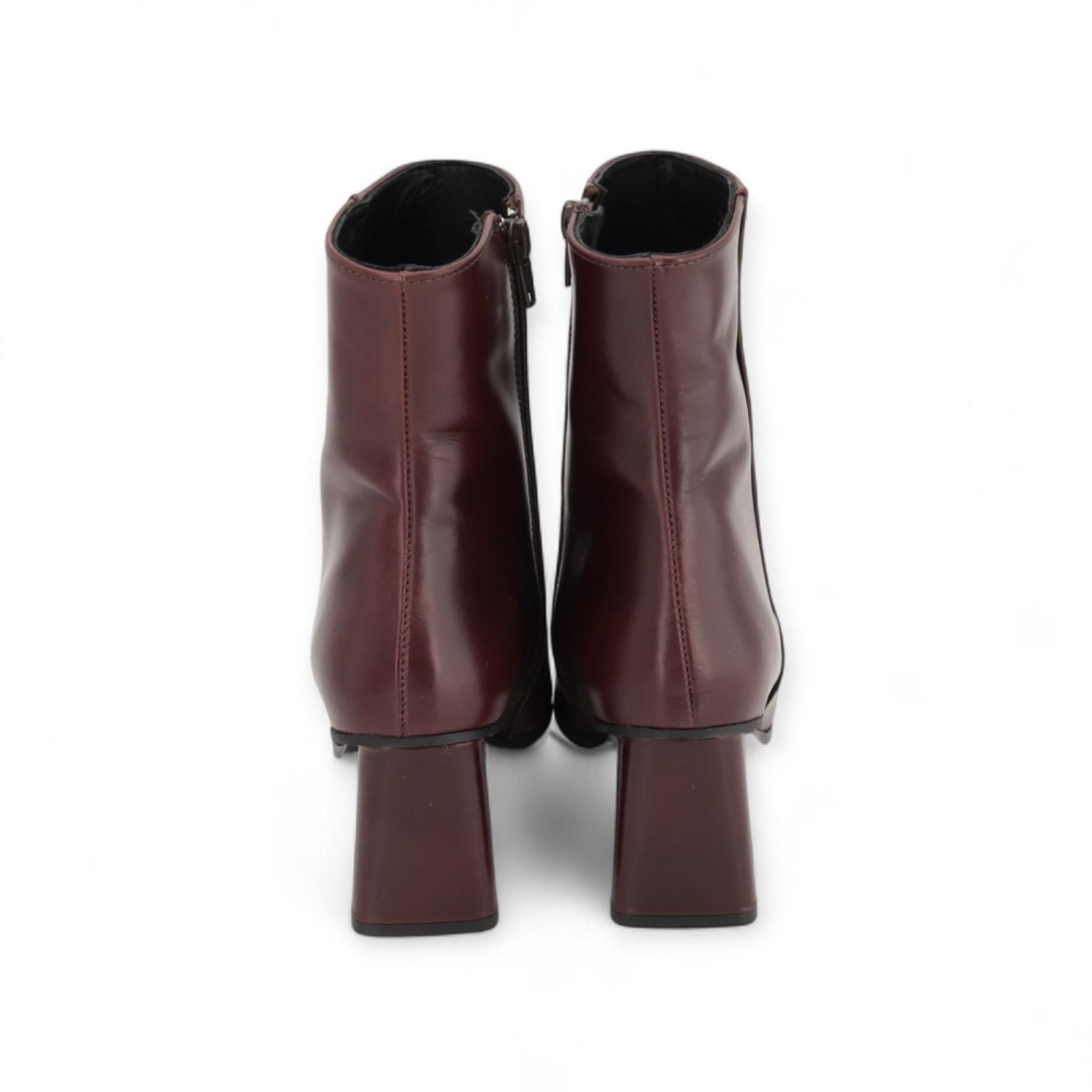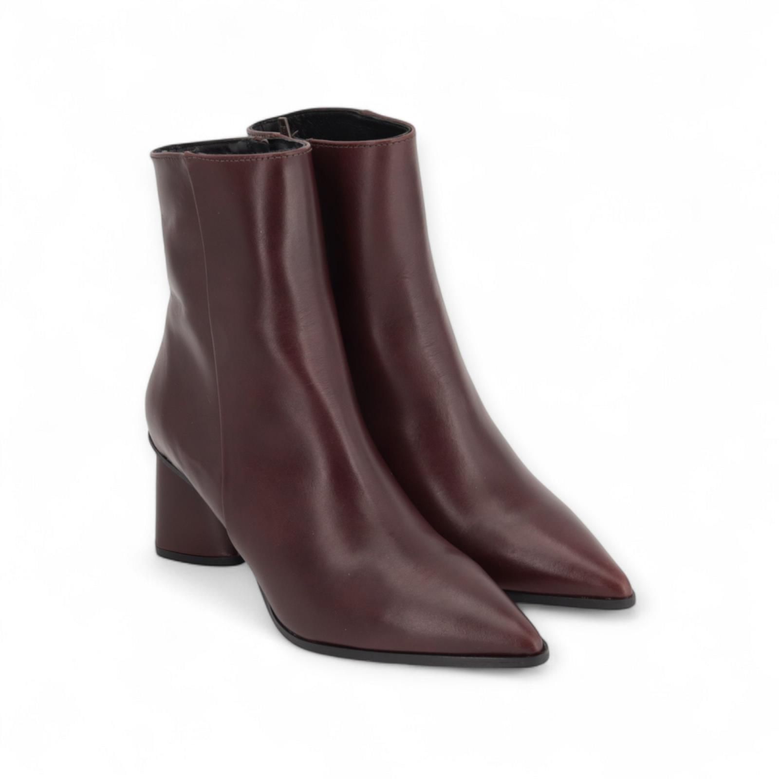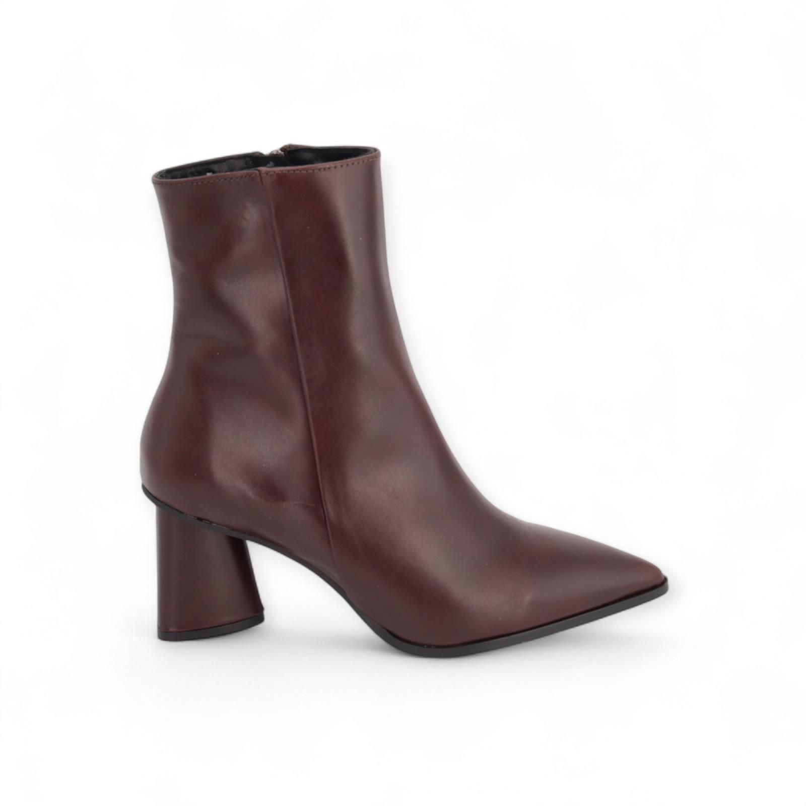 Enkellaars Veline van CTWLK voor dames. Dit elegant enkellaarsje is in bruin leer. Afgewerkt met een scherpe top en een cilindervormige hak van 5-5,5cm hoog. Is met een ritssluiting en een licht antislipzool.