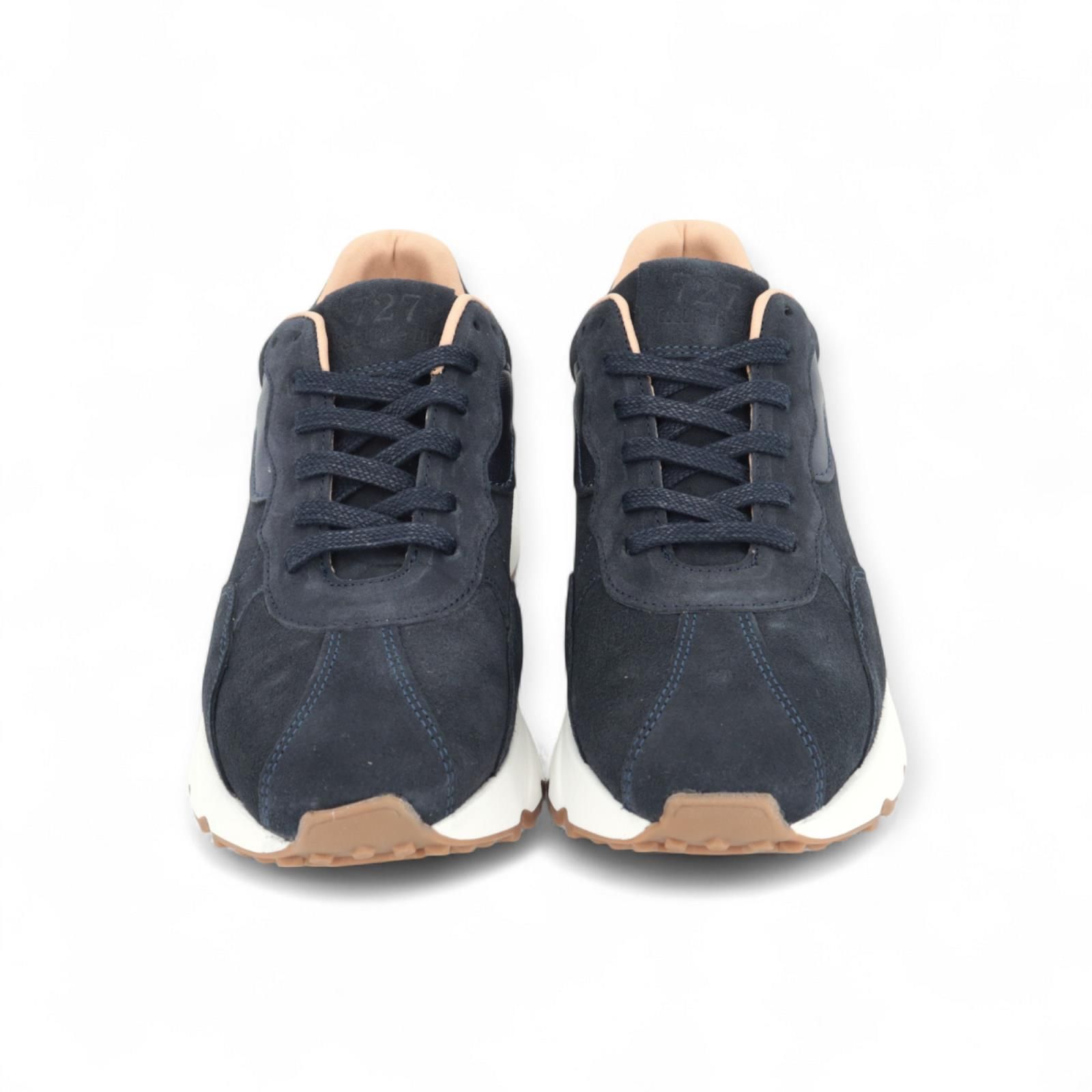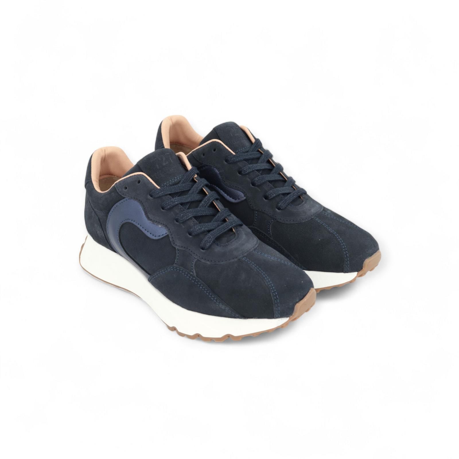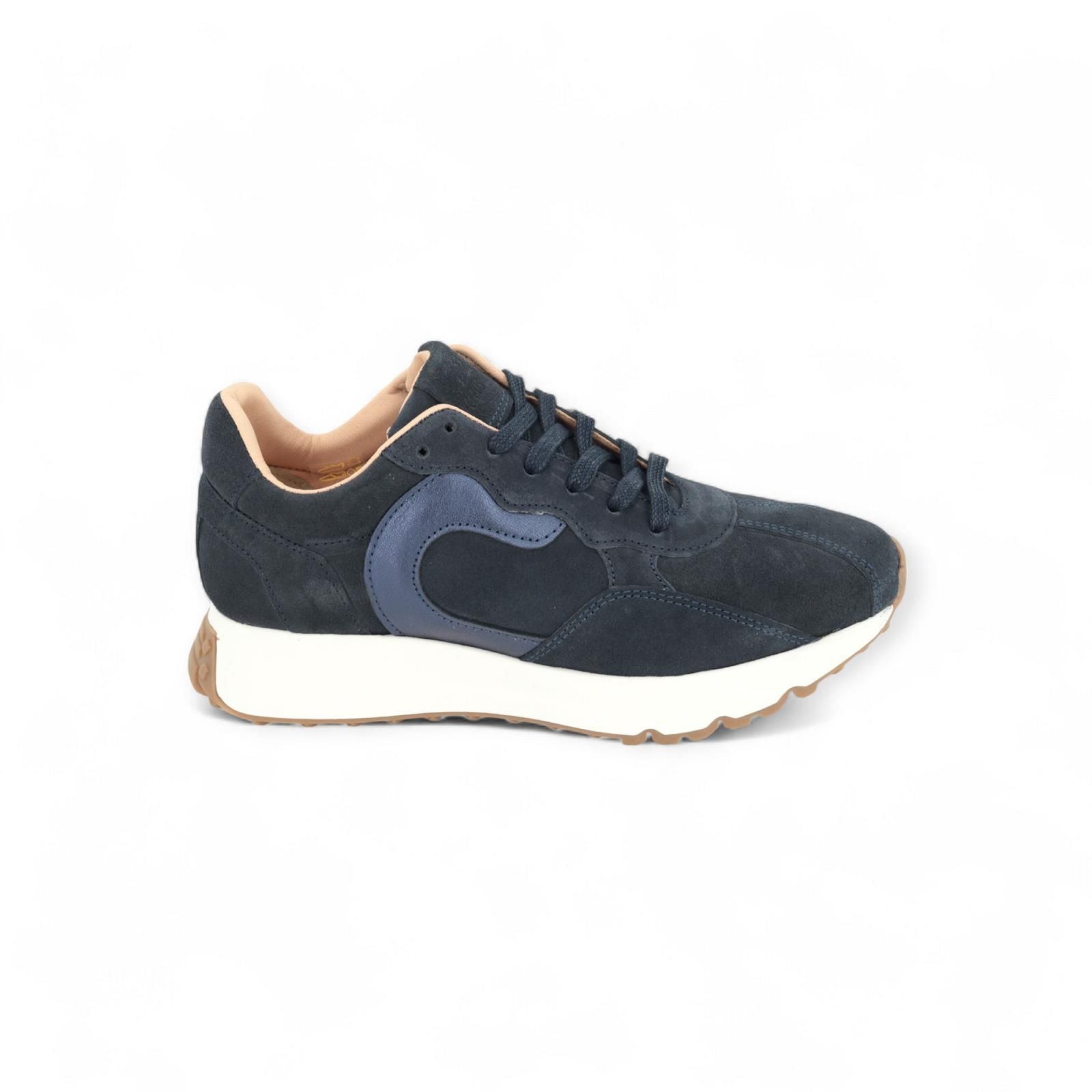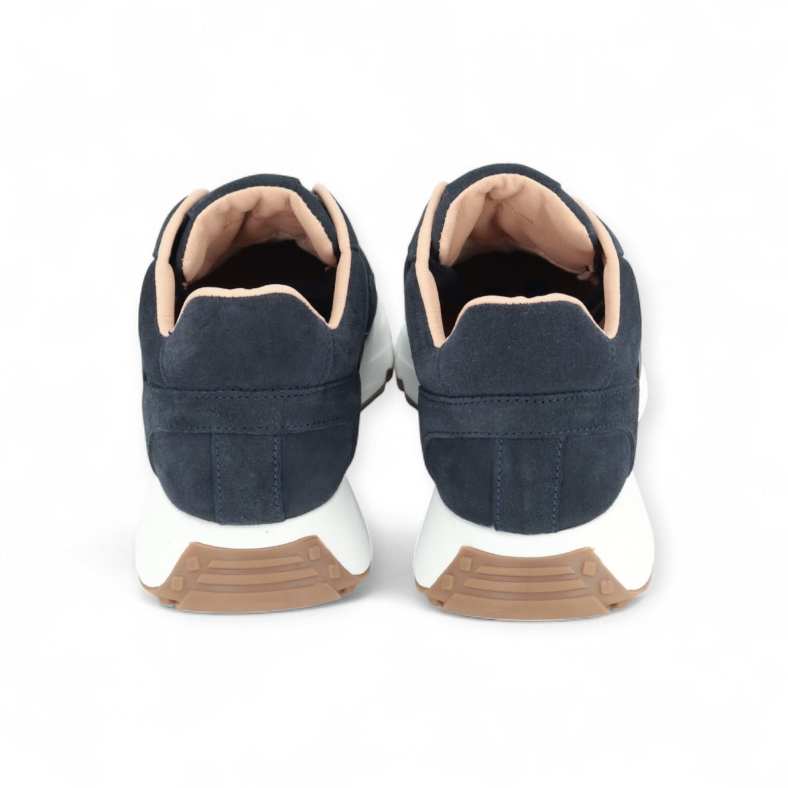 Sneaker Backie van Cycleur de LUXE voor dames. Dit runner model is in blauw suède met aan de zijkant blauw shining stiksels. Is op een dikke witte antislipzool en de binnenzool is uitneembaar.