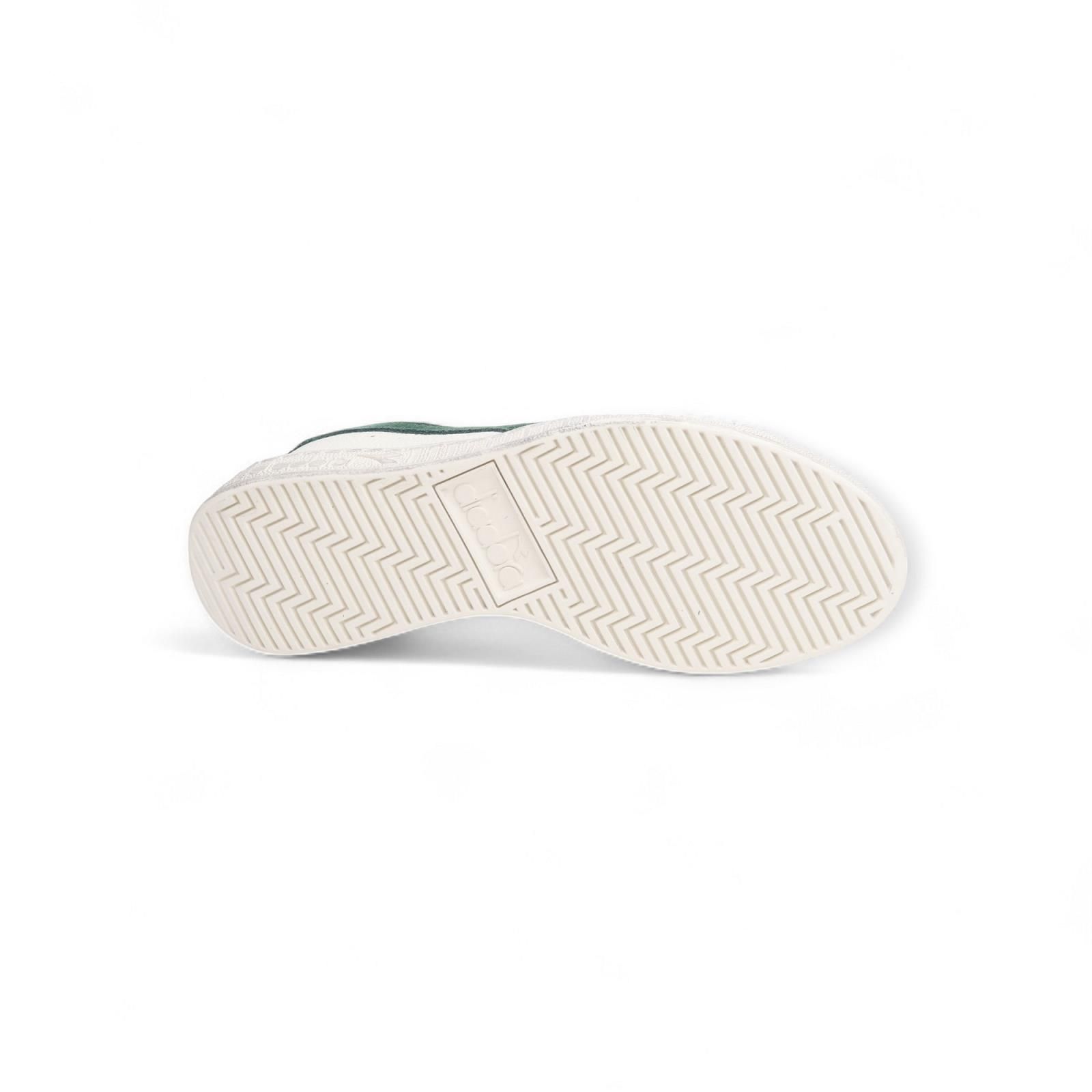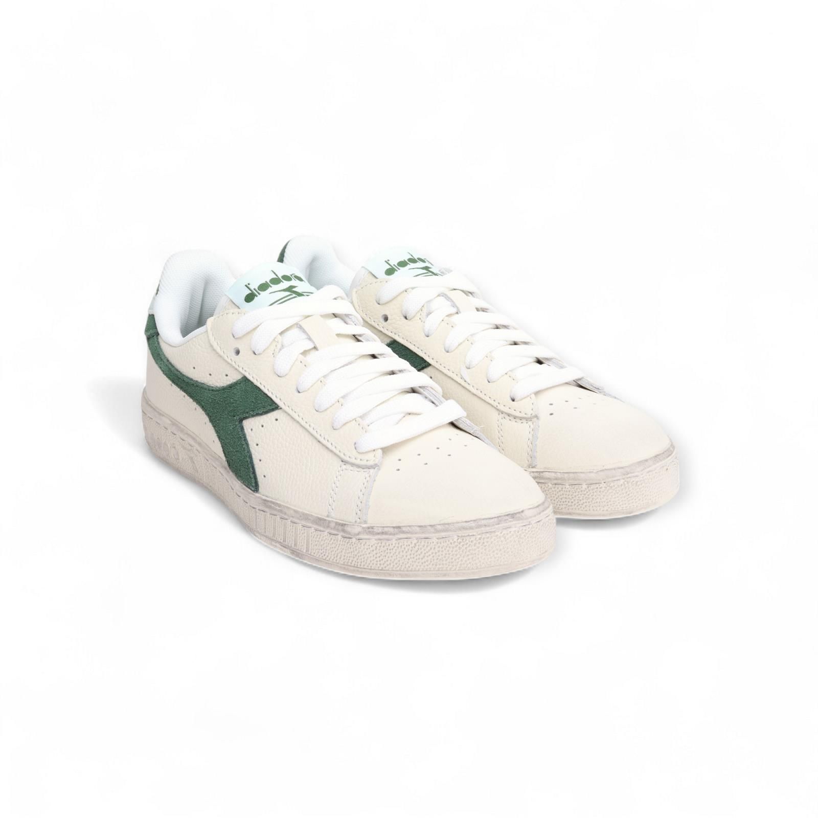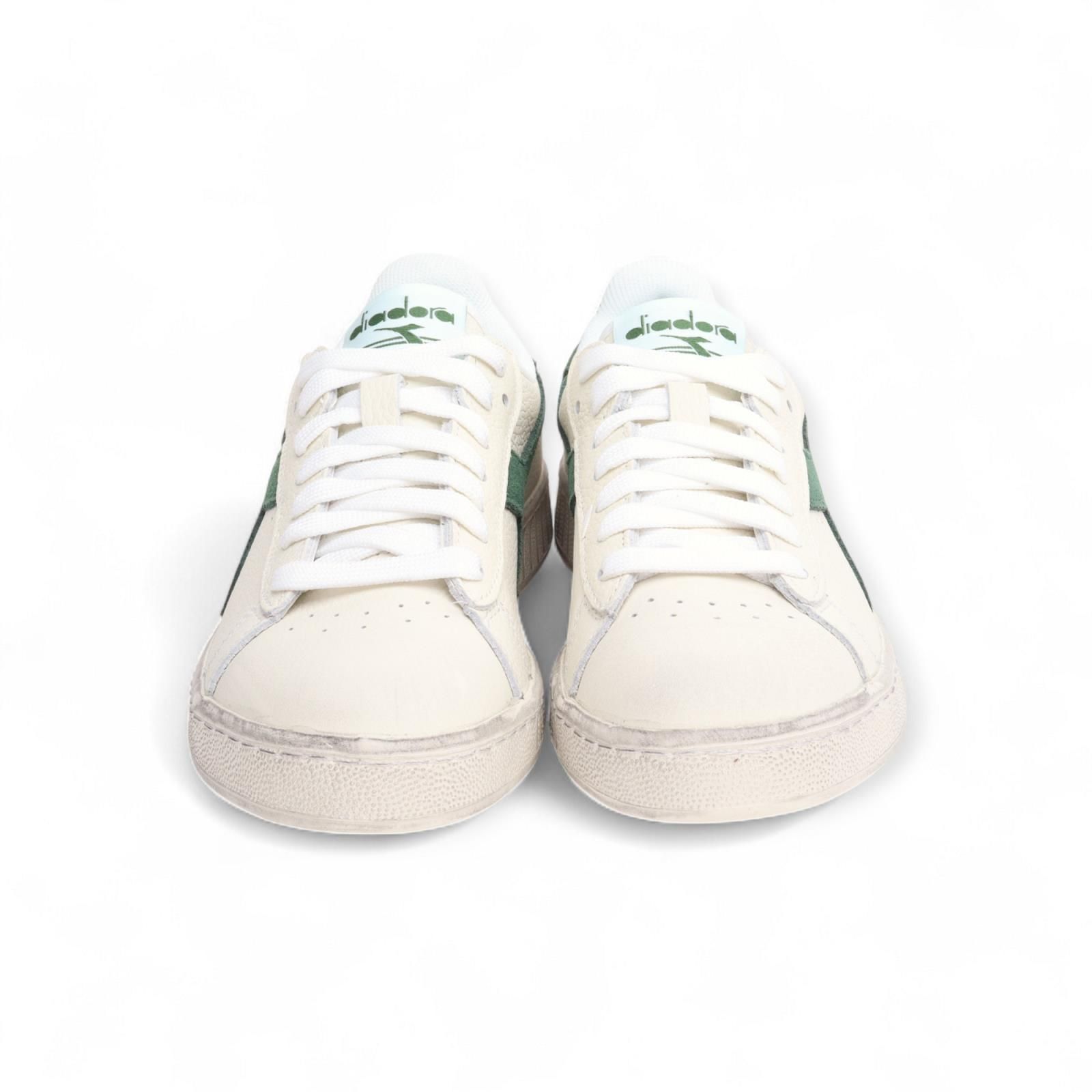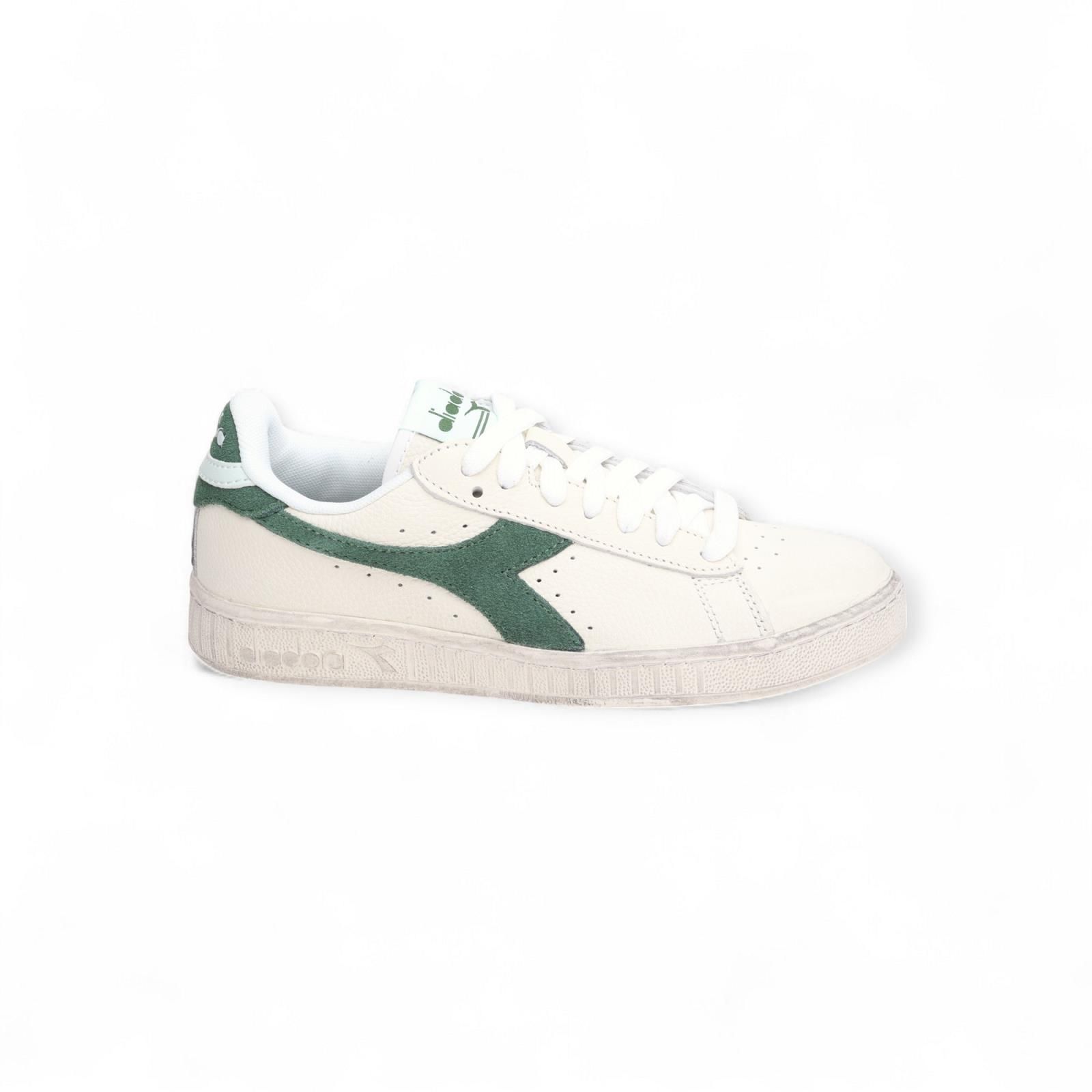 Deze Game L Low Diadora is dé populairste stijl aller tijden. Dit is de lage versie en is uitgevoerd in off wit leer met groene Diadora lijnen en een touch of lichtblauw achteraan op de hiellip. Dit model is unisex.