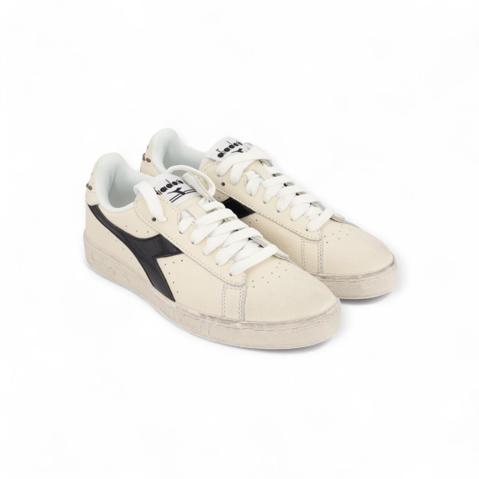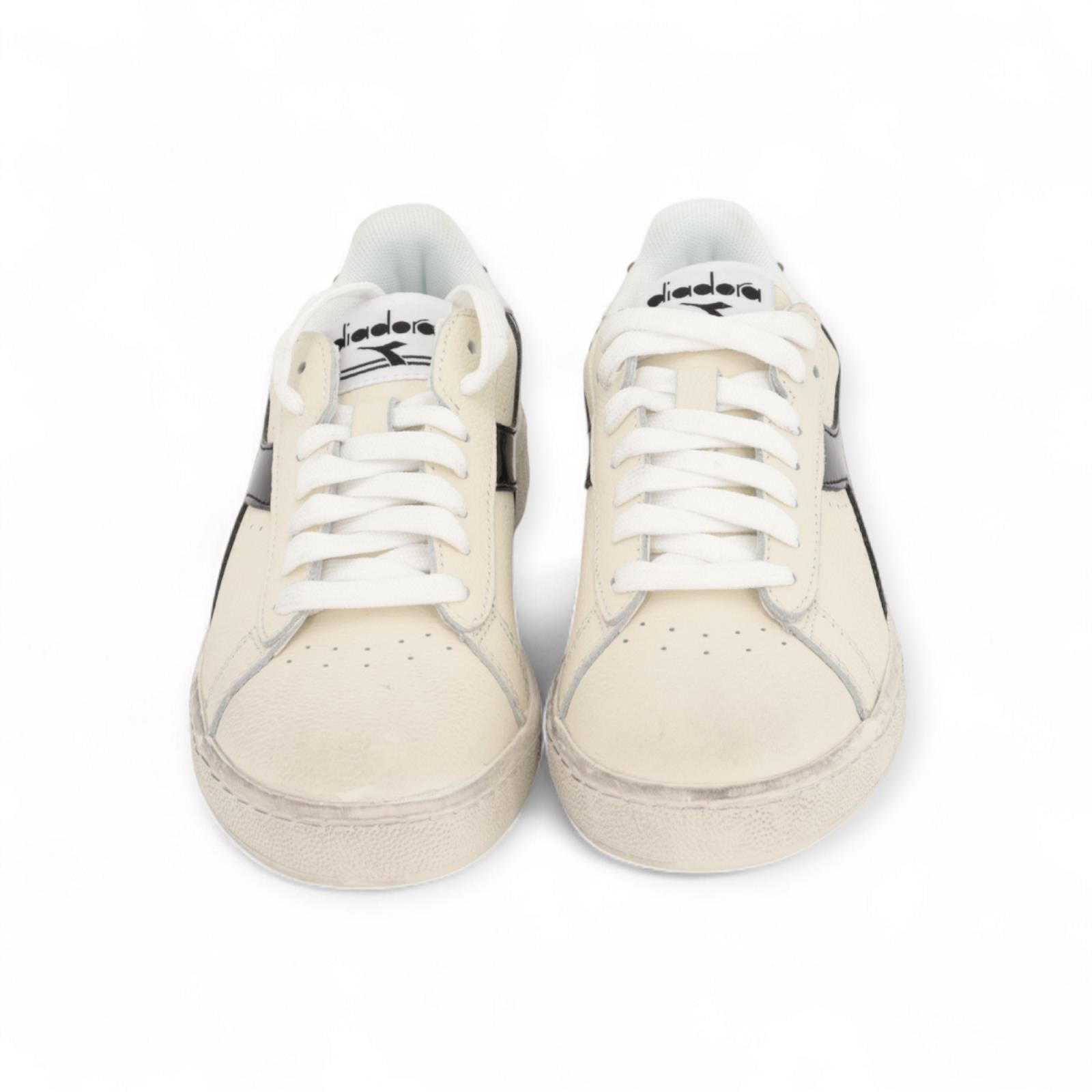 Deze Game Low Waxed Studs Diadora is dé populairste stijl aller tijden. Dit is de lage versie en is uitgevoerd in off wit leer met stoere studs op de hielflap. De Diadora lijnen zijn in zwart lakleer.