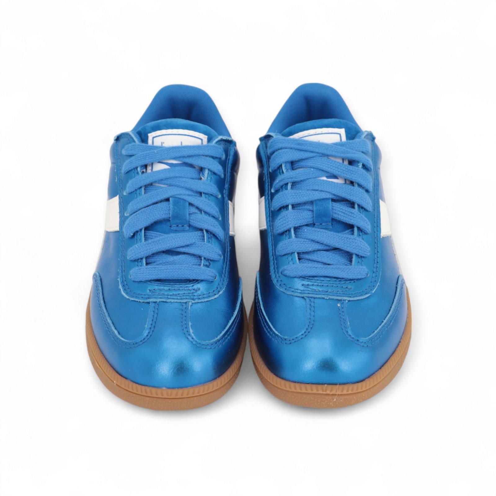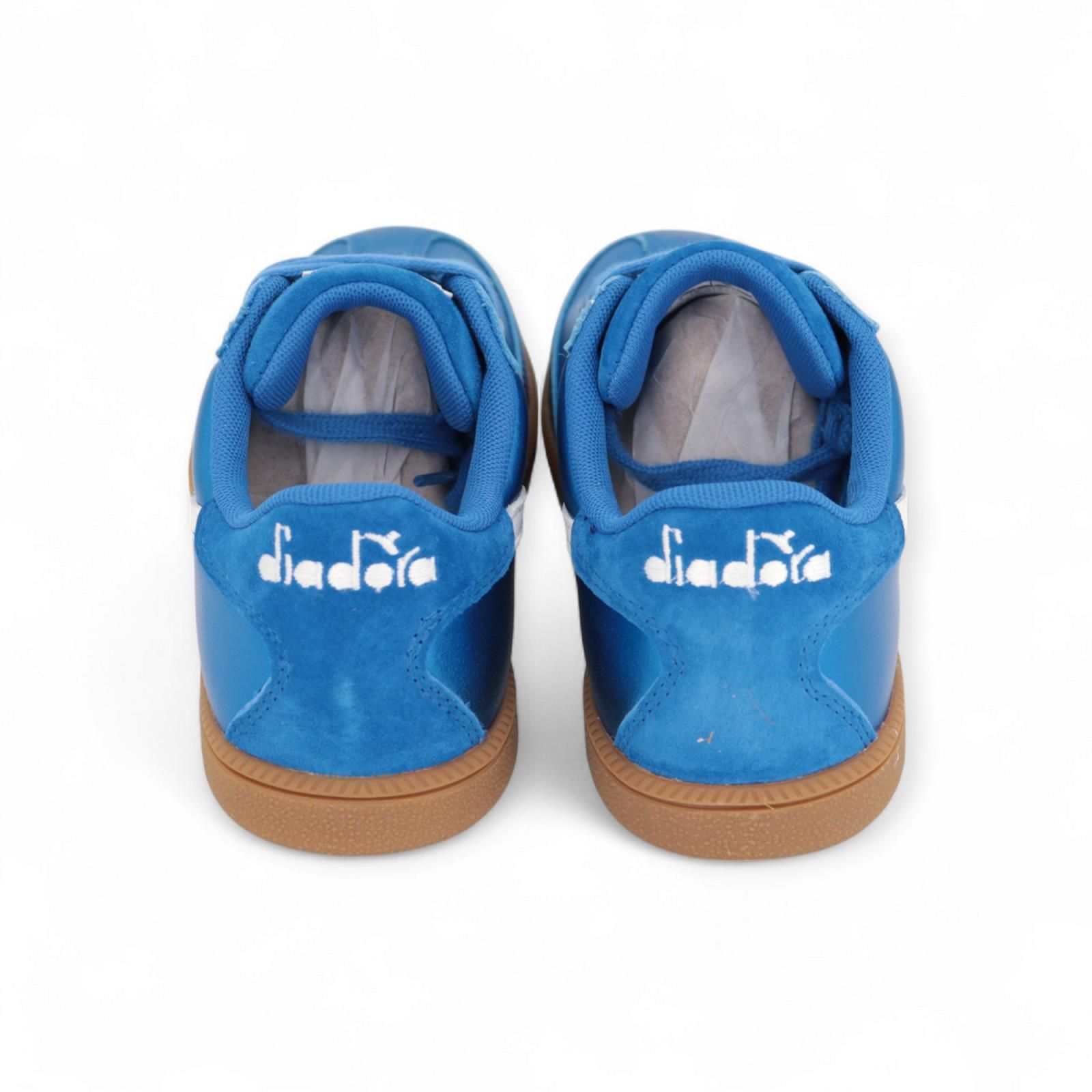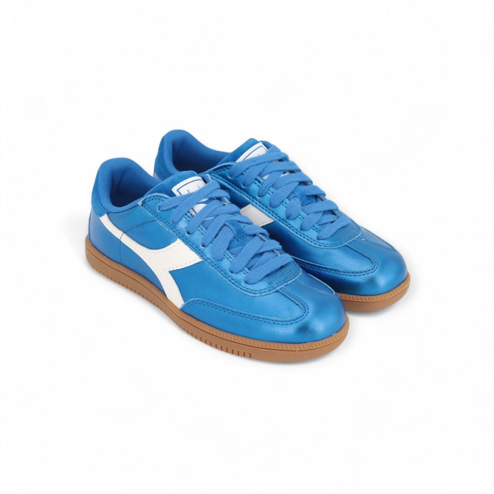Deze Trainer Metallic van Diadora voor dames maakt een comeback in de sneakerwereld. Het model is typerend aan hun zool: comfortabel, klassiek en een zool met handbal drukpunten. Deze leren versie in uitgevoerd in shining blauw met witte Diadora strepen.