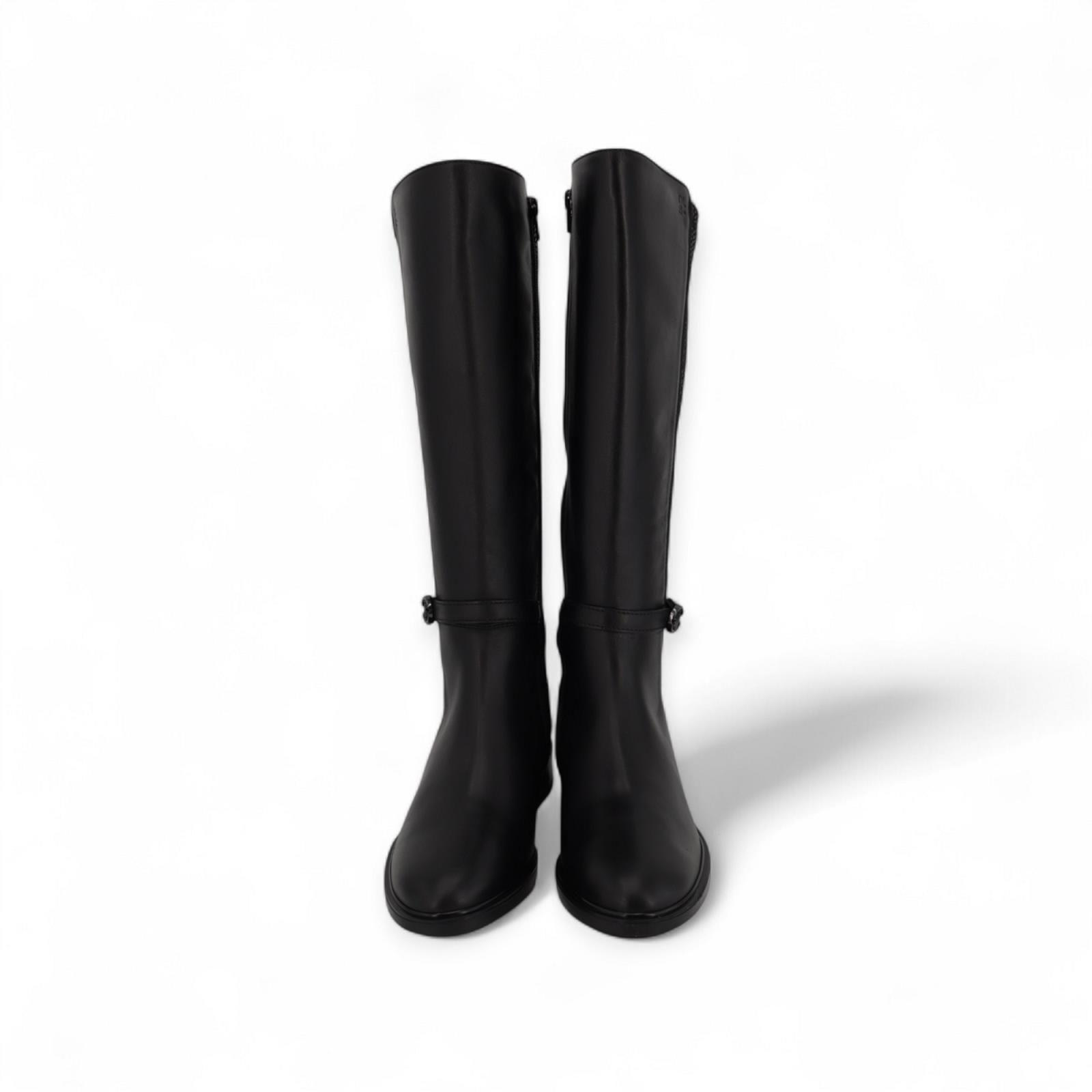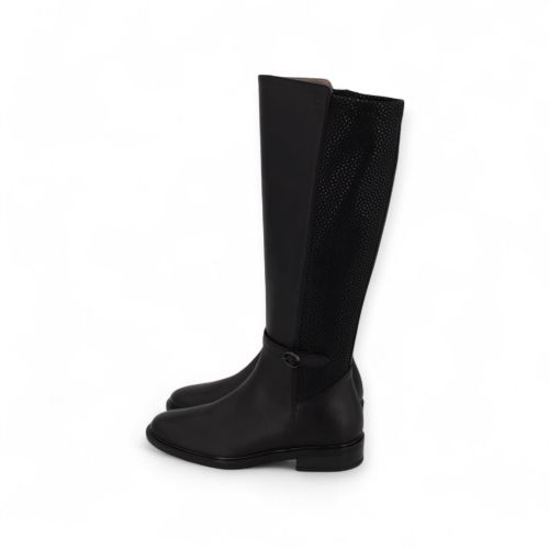Laars van DL Sport 6830 voor dames. Deze laars is in combinatie van zwart effen en geprint leer met een volledige ritssluiting. Is afgewerkt met een fijn bandje over de wreef met een zilveren gespsluiting. De binnenzool is uitneembaar.