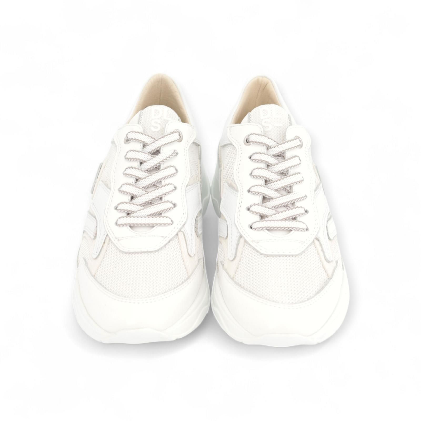 6540 V08 witte sneaker van Dl Sport voor dames sneaker is het typische runnermodel. Prachtig afgewerkt met stukken suède, leder & mesh. Heeft een lichte zool waardoor ze zeer comfortabel zijn. De binnenzolen zijn uitneembaar.
