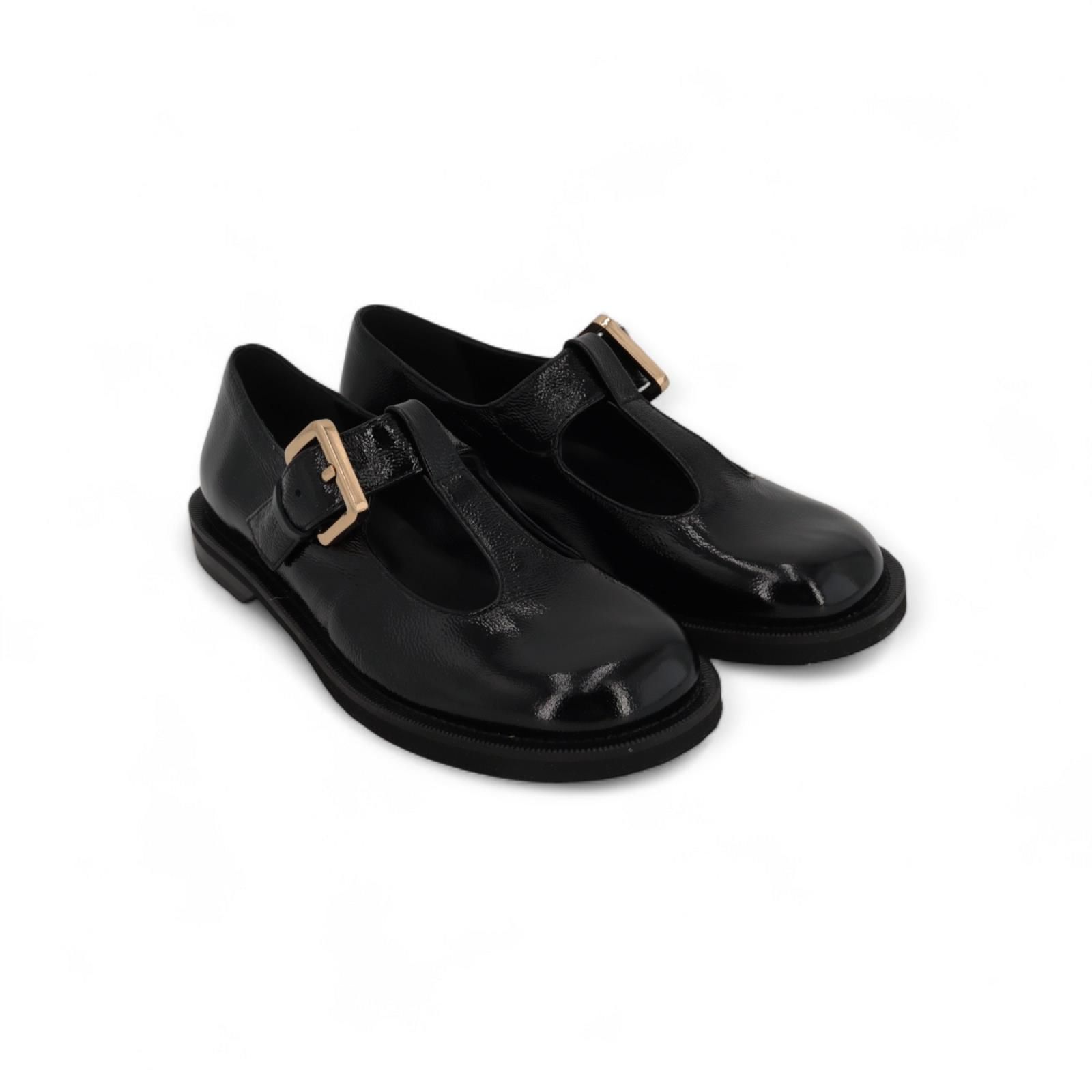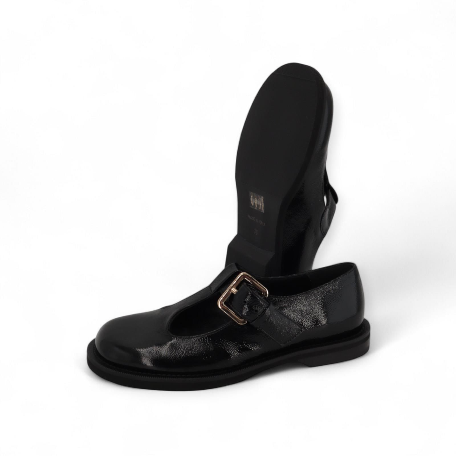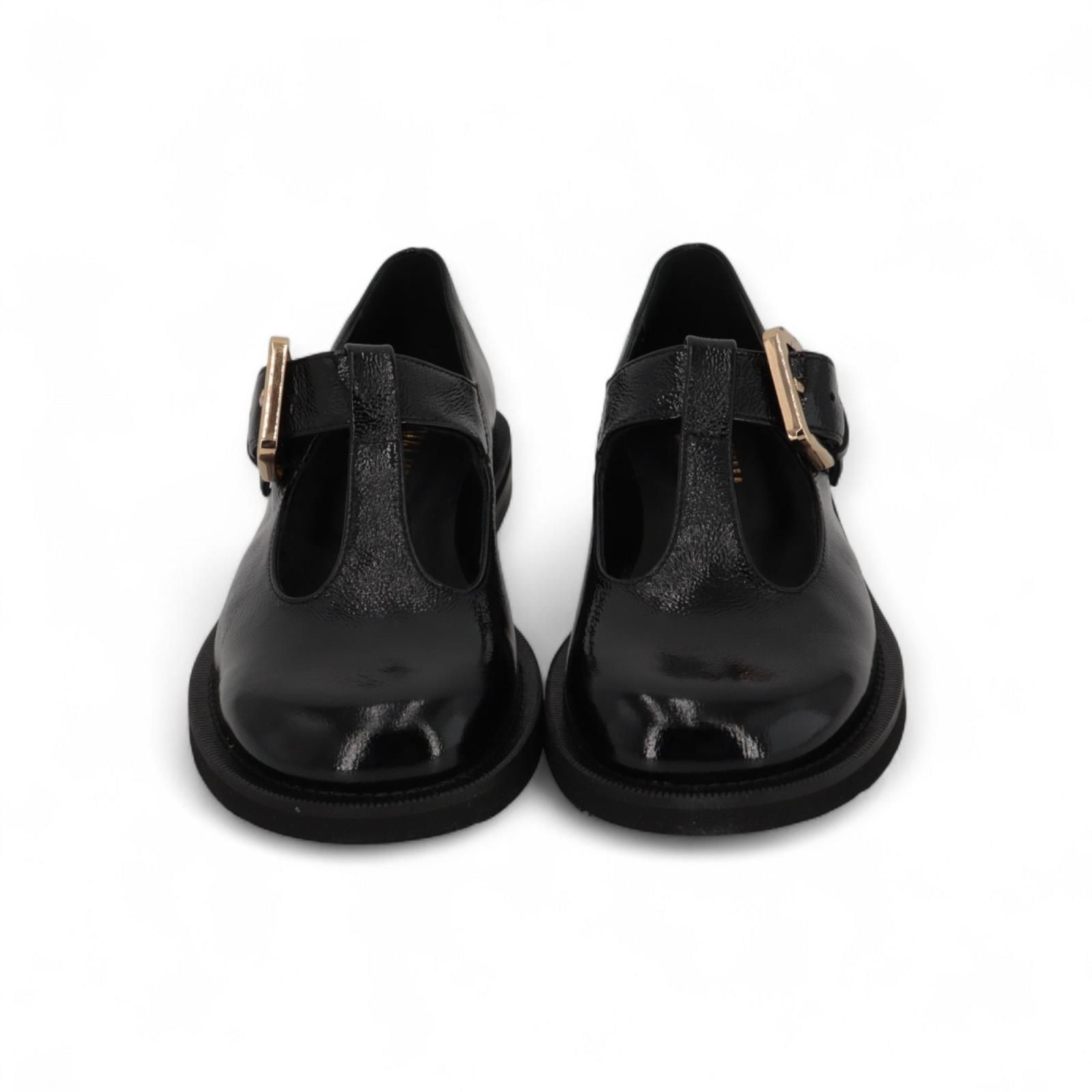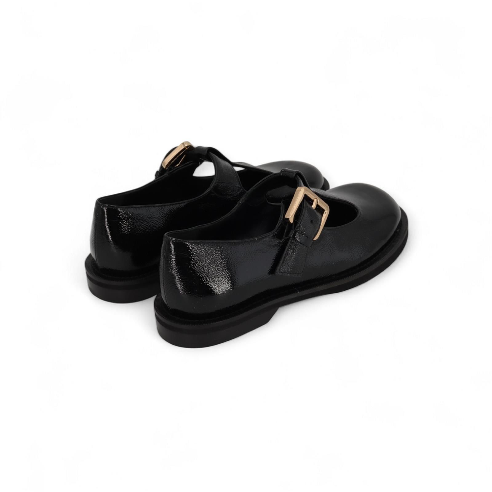 Mocassin 3923 van Evaluna voor dames. Deze elegante schoen is in zwart lakleer. Heeft een ronde neus met een open wreef. Is afgesloten met een bandje en gespsluiting over de wreef . Is op een dikke zwarte antislipzool.
