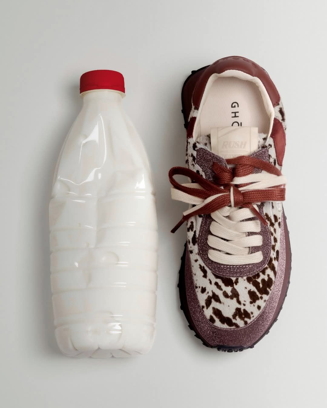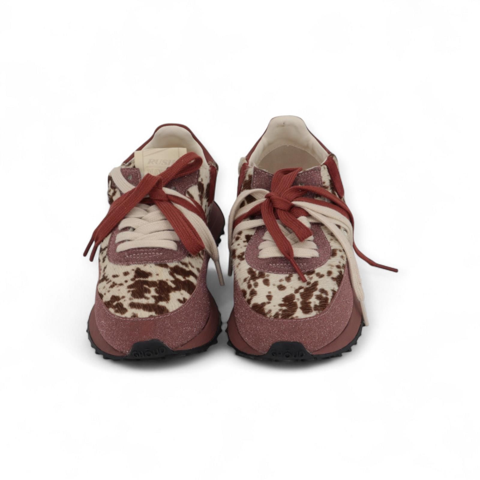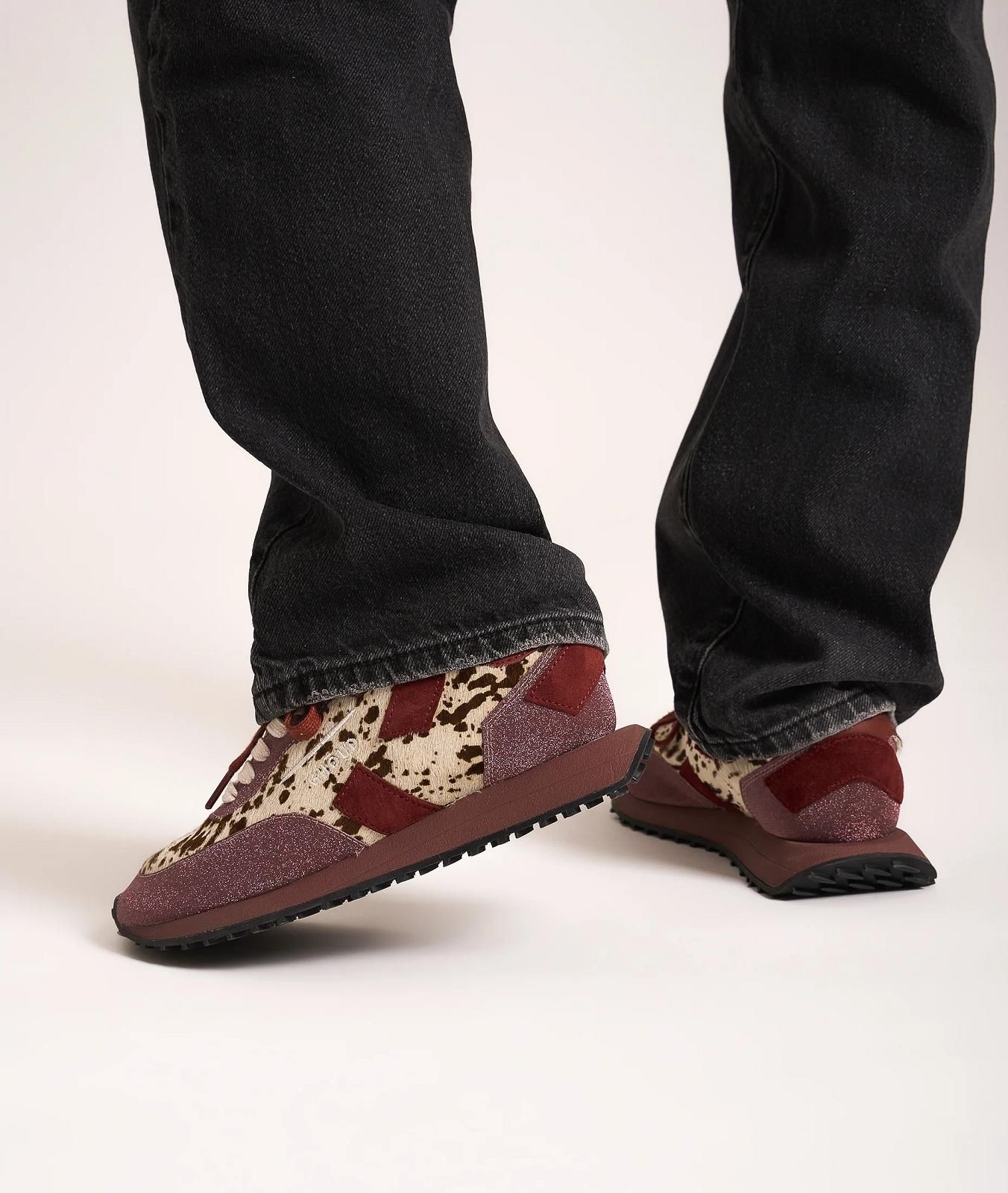 De Starlight sneaker van Ghoud voor dames. Dit runner model is in leopard vel met suède en shining rode tinten stiksels. De hiellip is in bordeaux met GHOUD erop. Gaat naadloos samen met de contrasterende dubbele (off wit en bordeaux) veters, waardoor je een unieke en dynamische look krijgt. Deze sneaker heeft een lichte rubberen zool. De binnenkant is in badstof met een uitneembare zool.