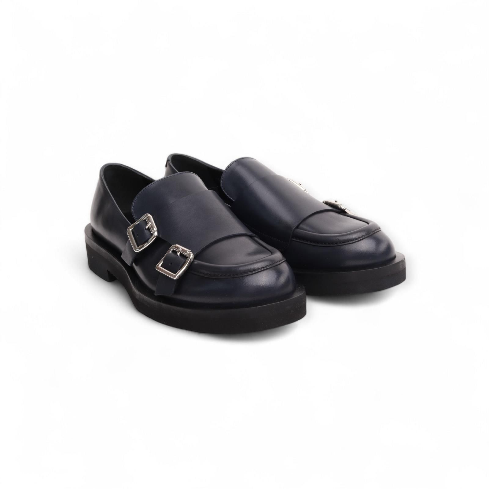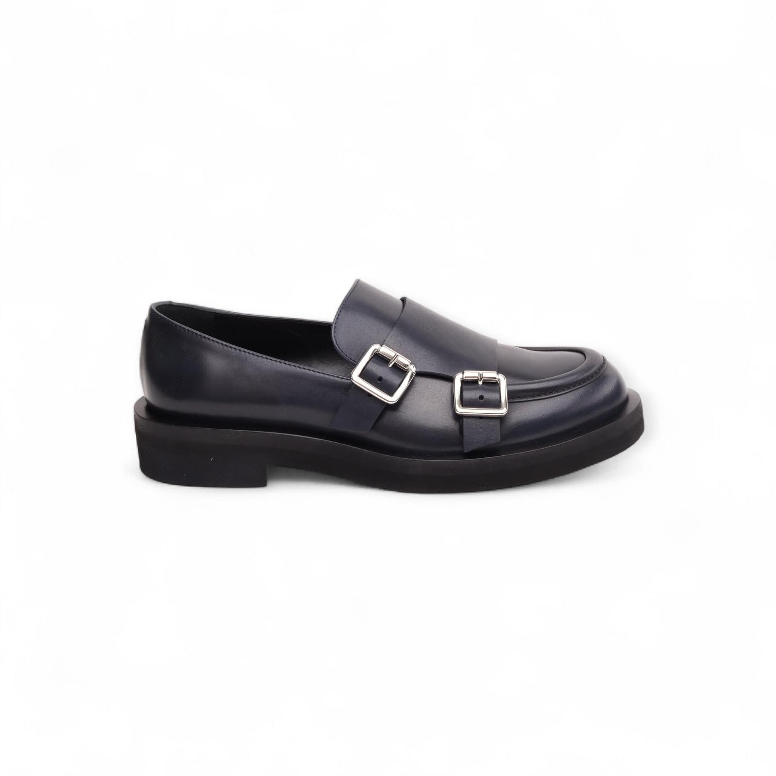 Mocassin Bayan van Guglielmo Rotta voor dames. Deze mocassin is in blauw leder. Heeft een band over de wreef met 2 gespsluitingen in zilver als extra detail. Is op een dikke antislipzool.