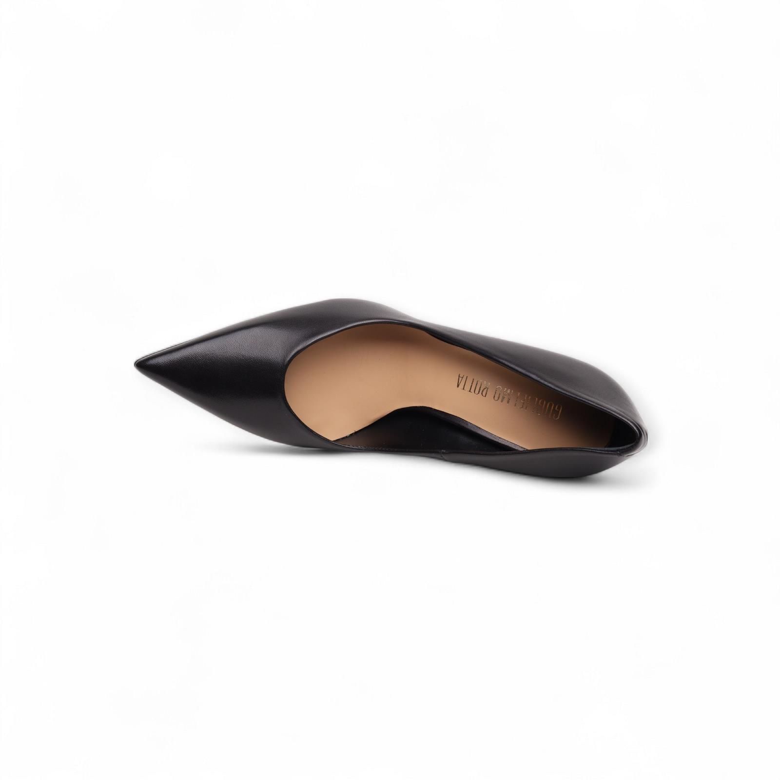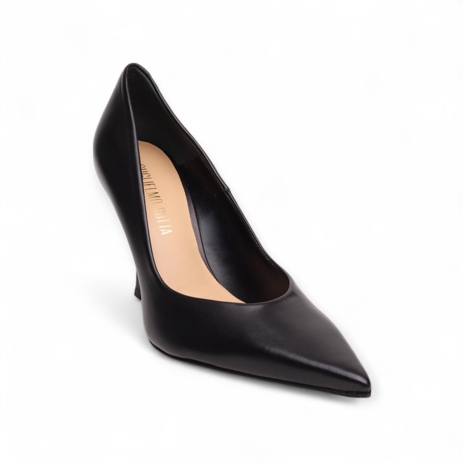 Pump Fiamma in zwart van Guglielmo Rotta voor dames. Deze elegante en comfortabele pump is volledig in leder. Heeft een scherpe top en is op een klein hakje van 7-7.5cm hoog.