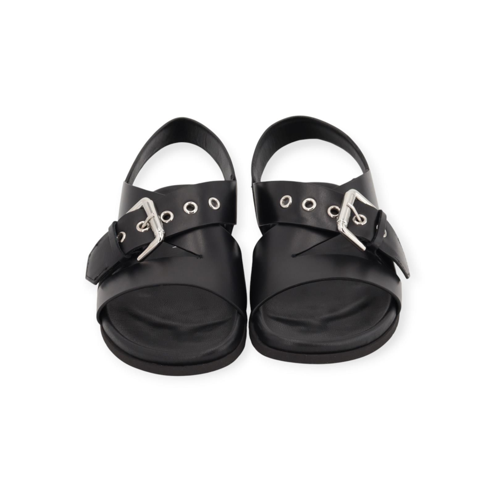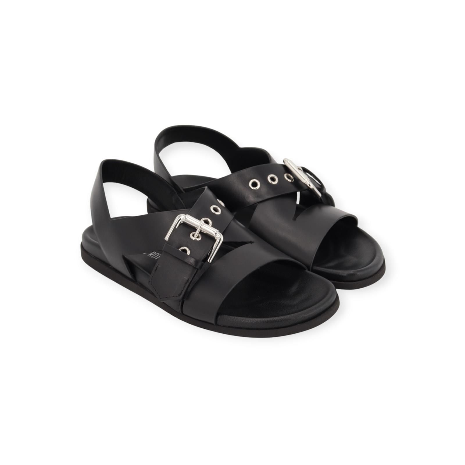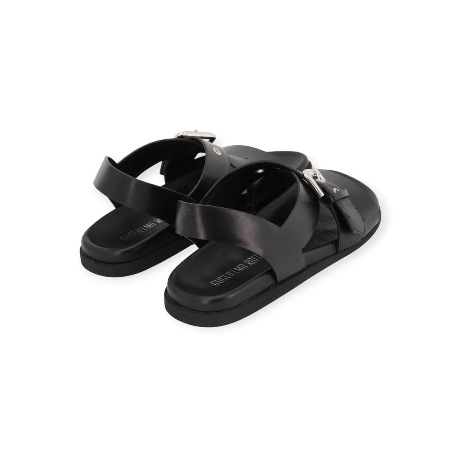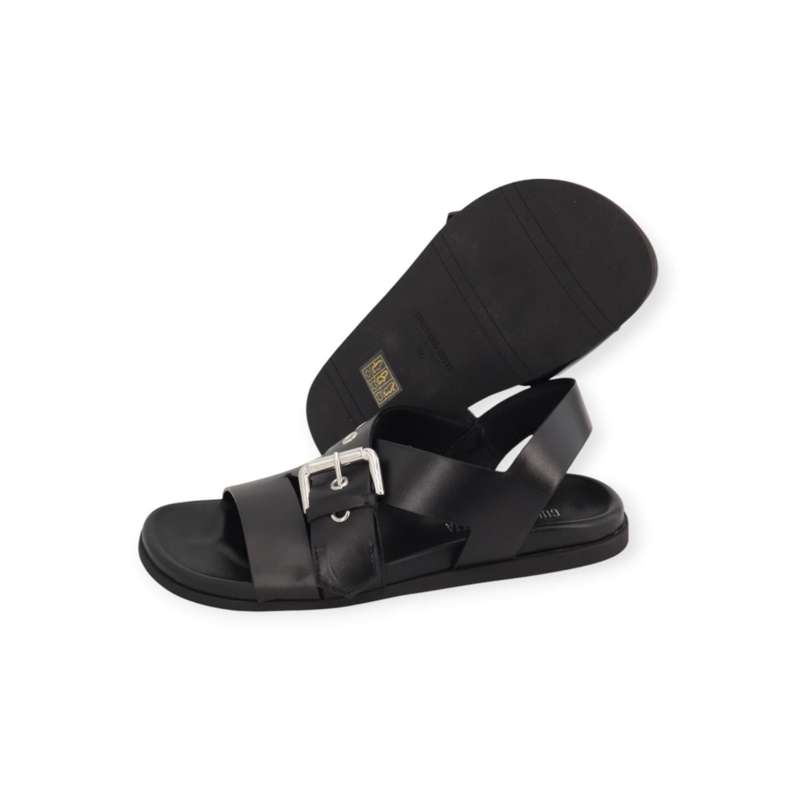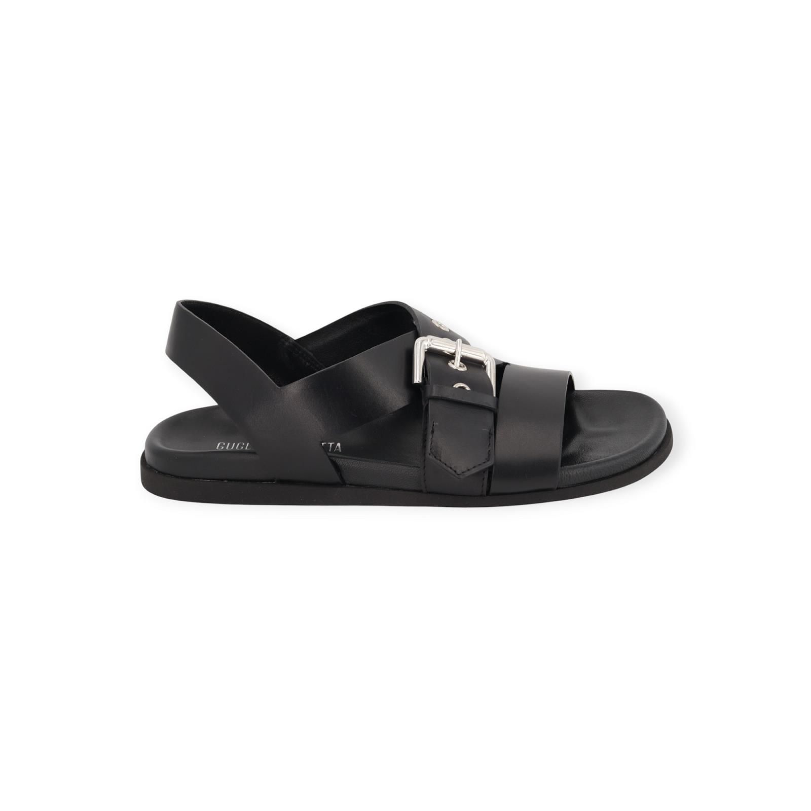 Sandaal Turner van Guglielmo Rotta voor dames. Deze sandaal is in zwart leer. Is een model waar je mooi vast in zit door de bandjes rond de hiel en wreef. Heeft een band met opvallende metalen oogjes en gespsluiting over de wreef. Heef een aangenaam voetbed en antislipzool.