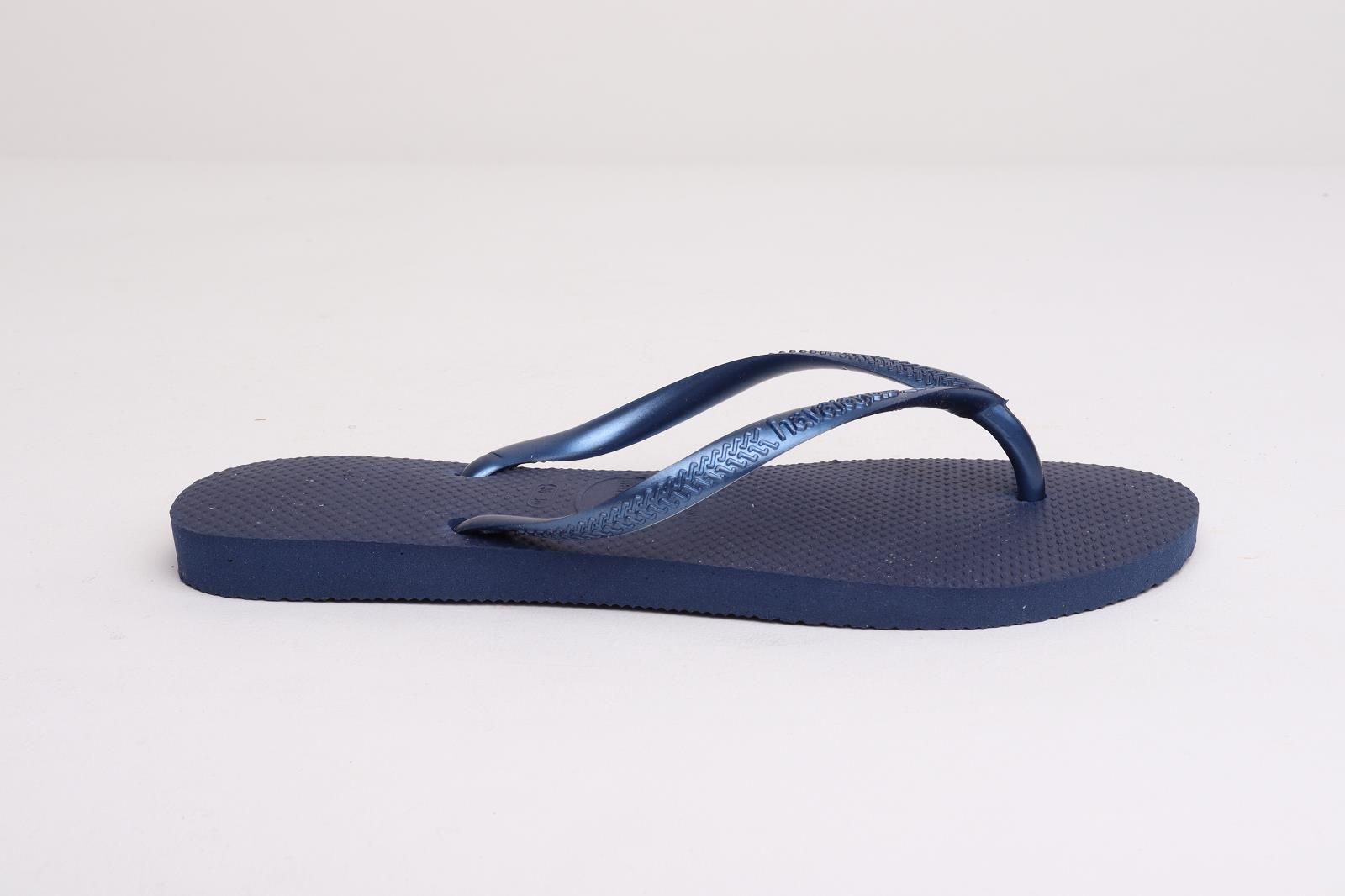 De Havaianas slipper Slim in blauw voor dames. Deze slipper combineert soepelheid en comfort in een onmisbaar product. De slippers bieden flexibel en duurzaam rubber dat een lange levensduur garandeert. De bandjes zijn in mettalic effect met het juiste niveau van comfort en glans. Is per 2 maten (35/36,37/38,39/40,41/42)