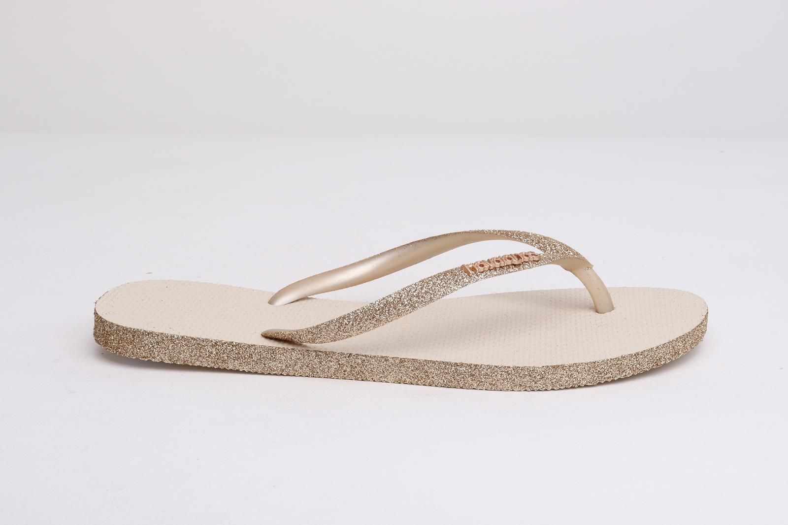 De Havaianas slipper Slim Sparkle in goud voor dames. Deze slipper combineert elegantie en comfort in een onmisbaar product. De slippers bieden flexibel en duurzaam rubber dat een lange levensduur garandeert. De bandjes en randen zijn versierd met glitter, wat een sprankelend accent toevoegt dat hun stijlvolle uitstraling versterkt. Is per 2 maten (35/36,37/38,39/40,41/42)