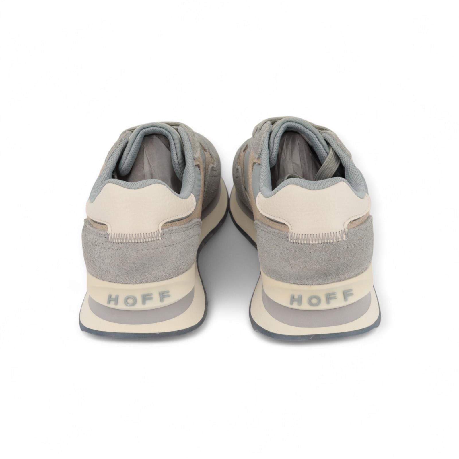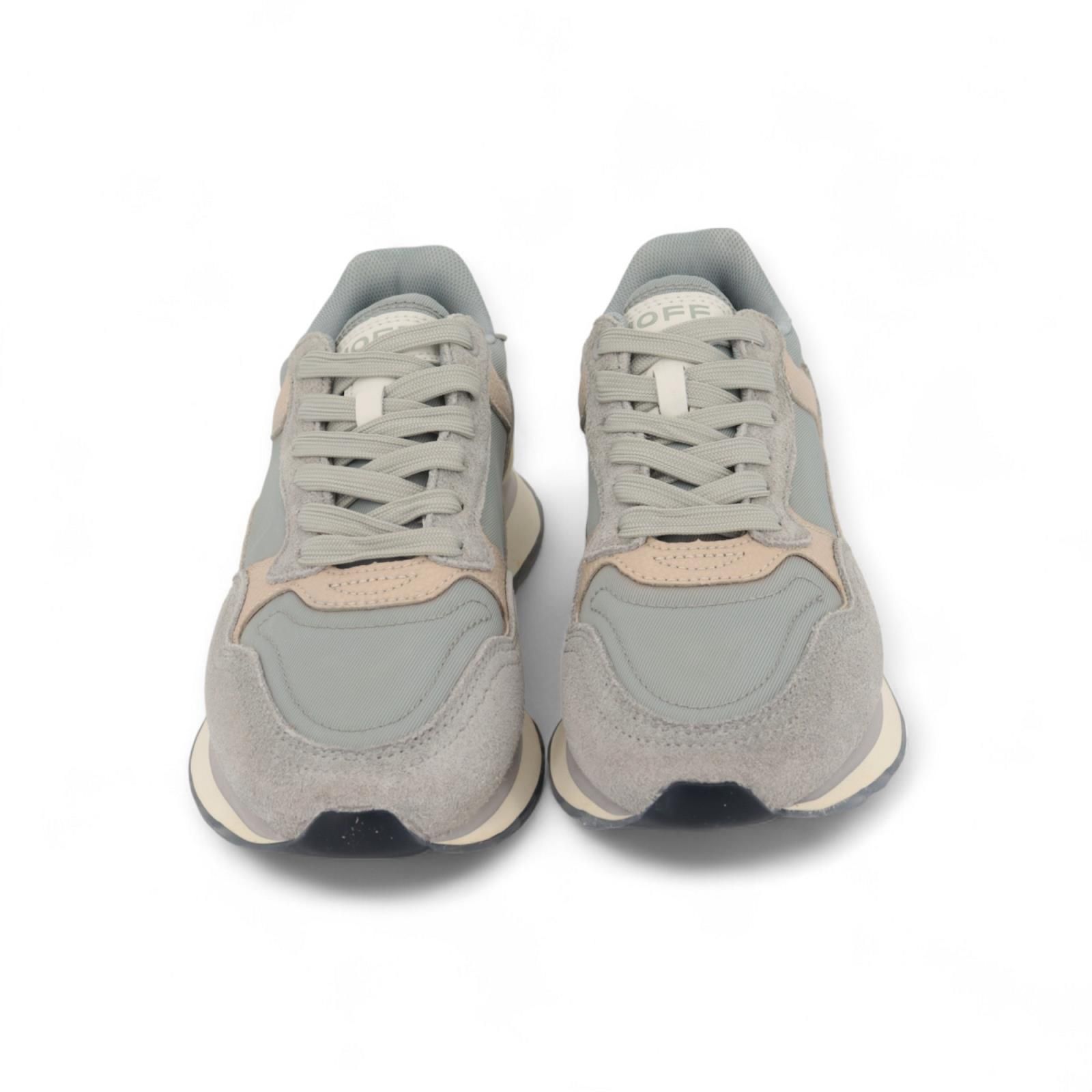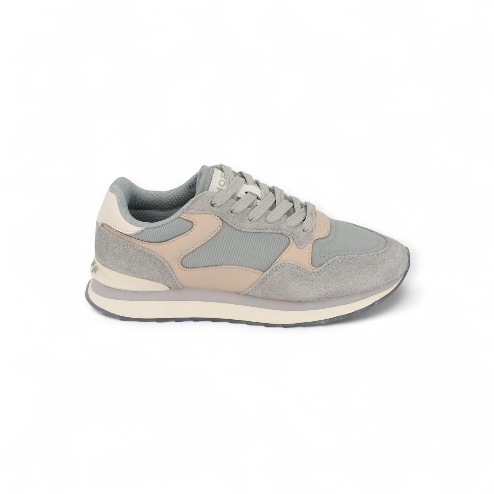 Sneaker City Düsseldorf van Hoff voor dames en heren. Deze sneaker is in blauw suède met nylon en beige leer. Heeft een logodetail in de hiel en een bedrukte citylook zool. De binnenzolen zijn uitneembaar.