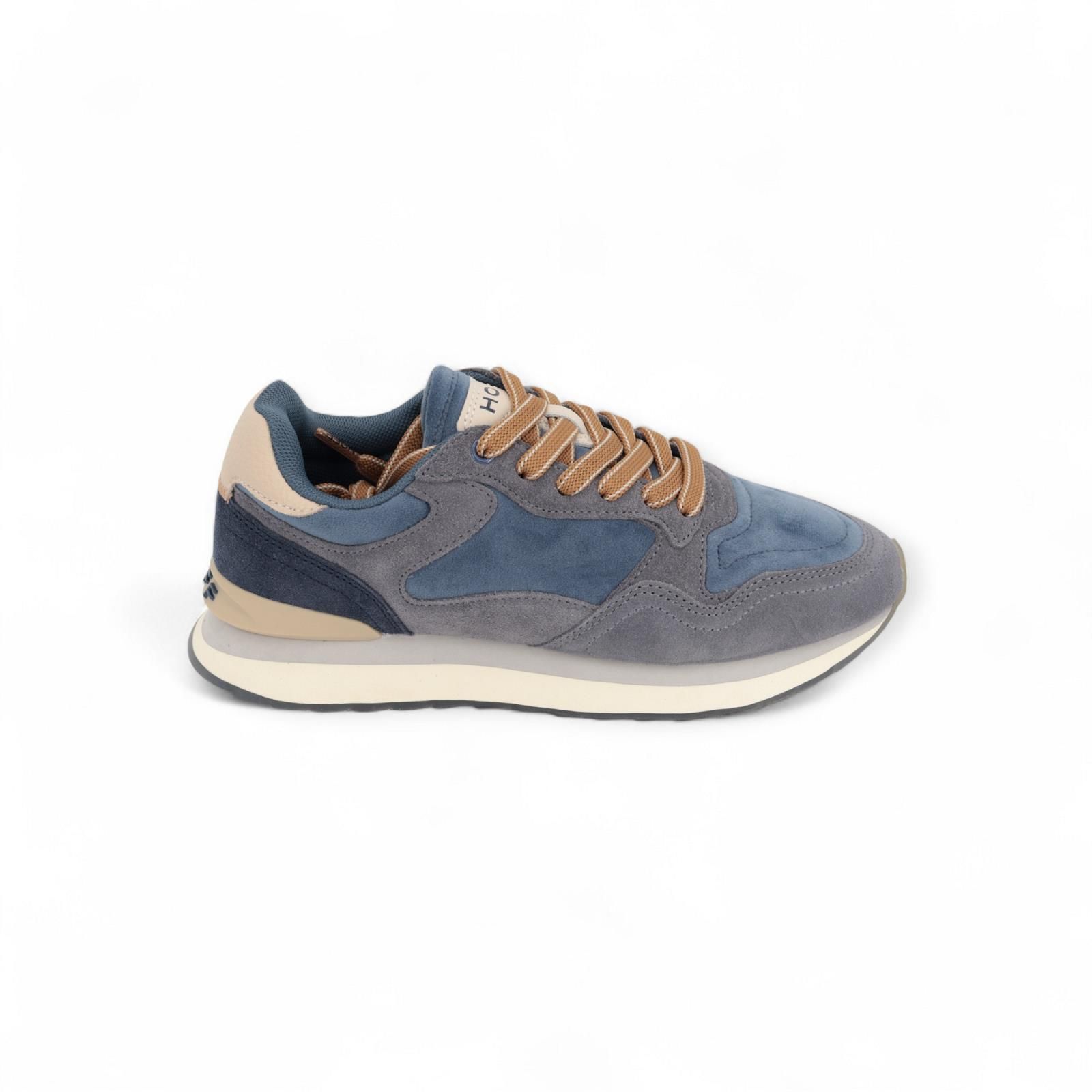 Sneaker City Miami van Hoff voor dames. Deze sneaker is in blauw / grijs suède met beige veters en een off wit hielflap. Heeft een logodetail in de hiel en een bedrukte citylook zool. De binnenzolen zijn uitneembaar.