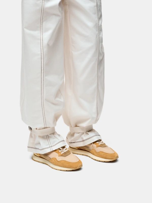 Sneaker city voor dames. Deze sneaker is in camel tinten suède met nylon. Heeft een off wit hielflap en een off wit 3D hiel met logodetail. De binnenzool is uitneembaar.