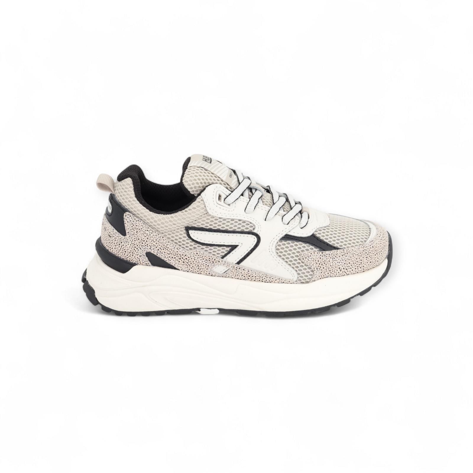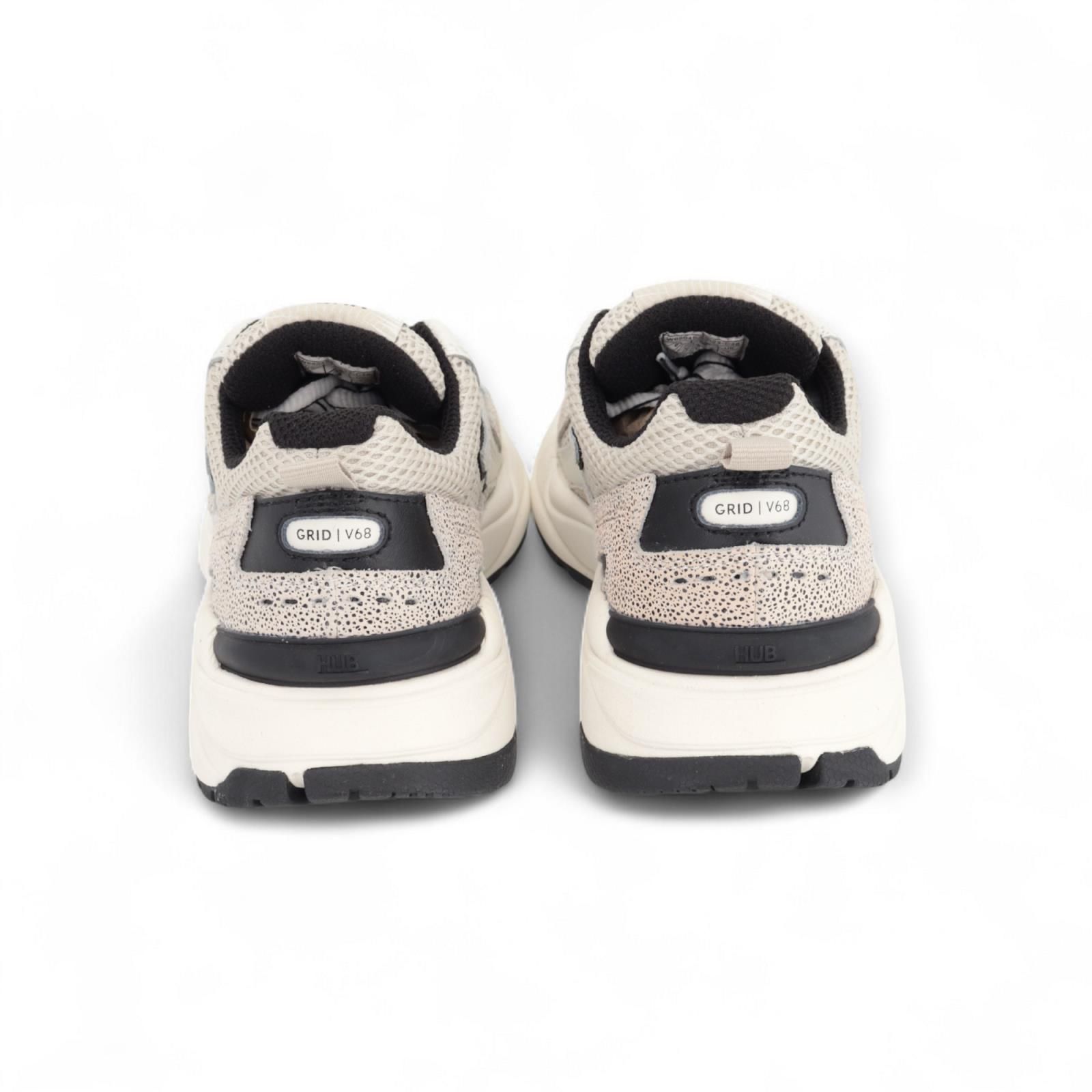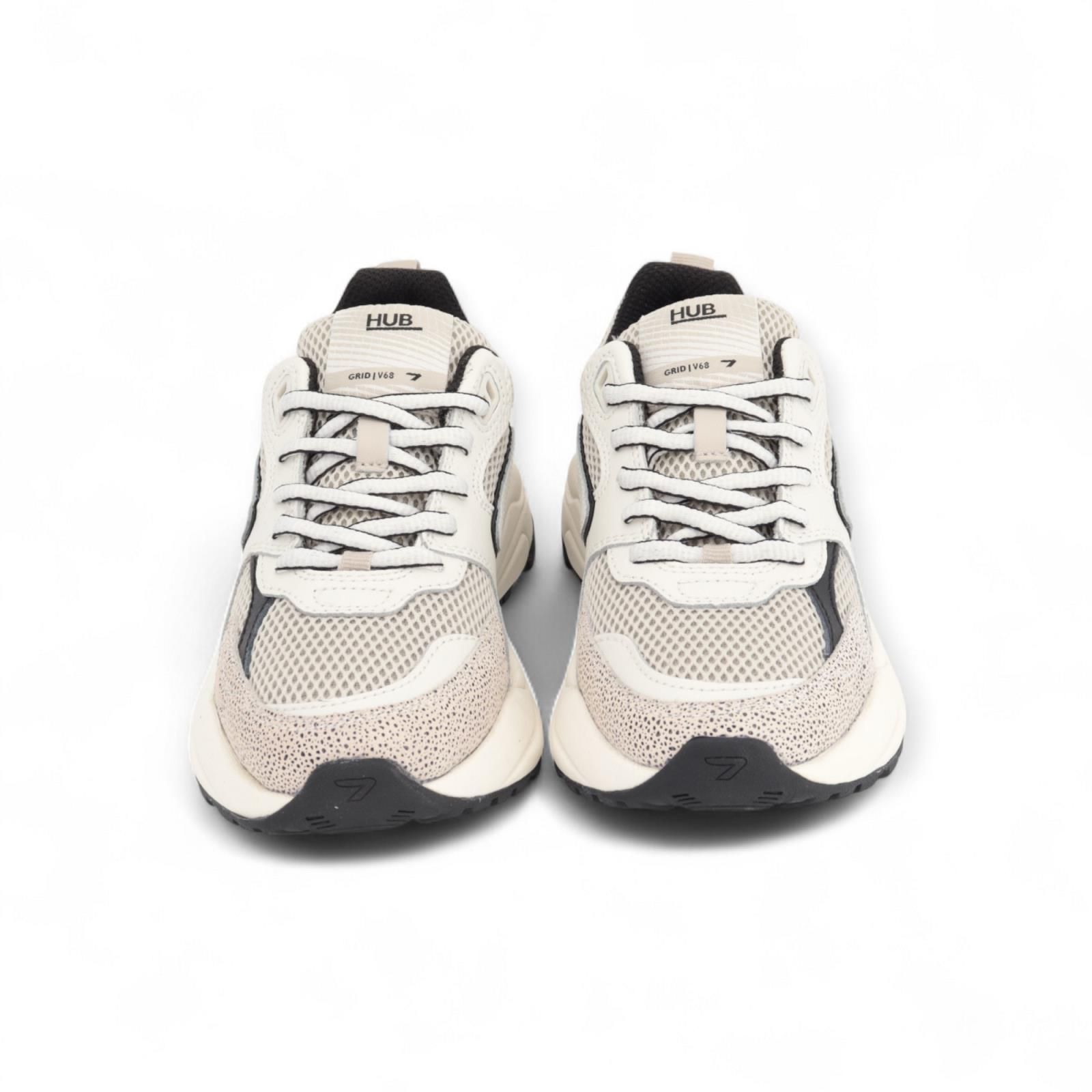 Grid sneaker van Hub voor dames. Deze runner is gemaakt van leder en mesh in tinten wit en zwart met gespikkeld patroon. Is op een dikke zool die zorgt voor extra comfort en duurzaamheid. De binnenzool is uitneembaar.